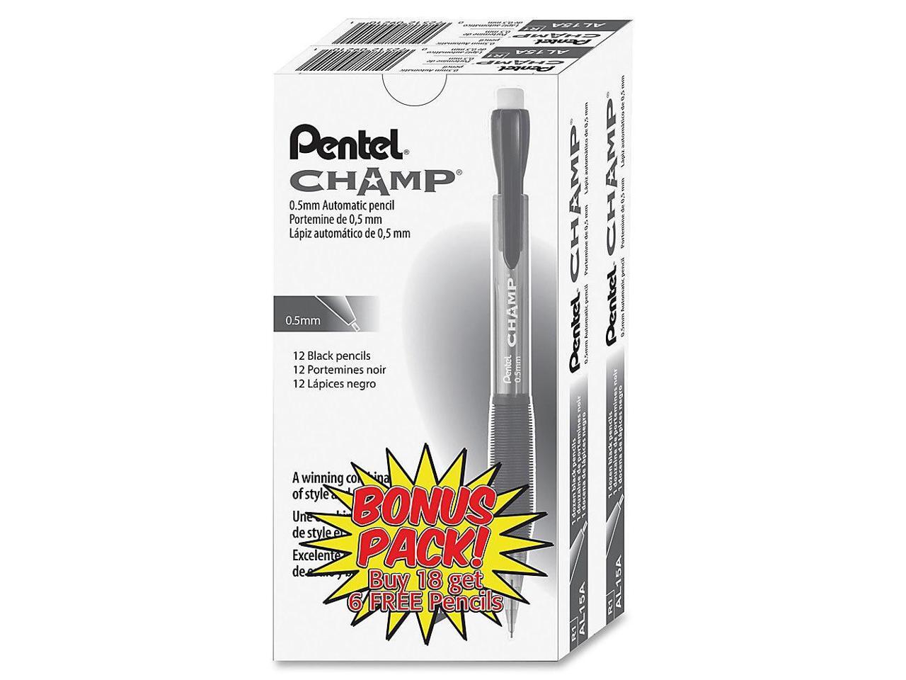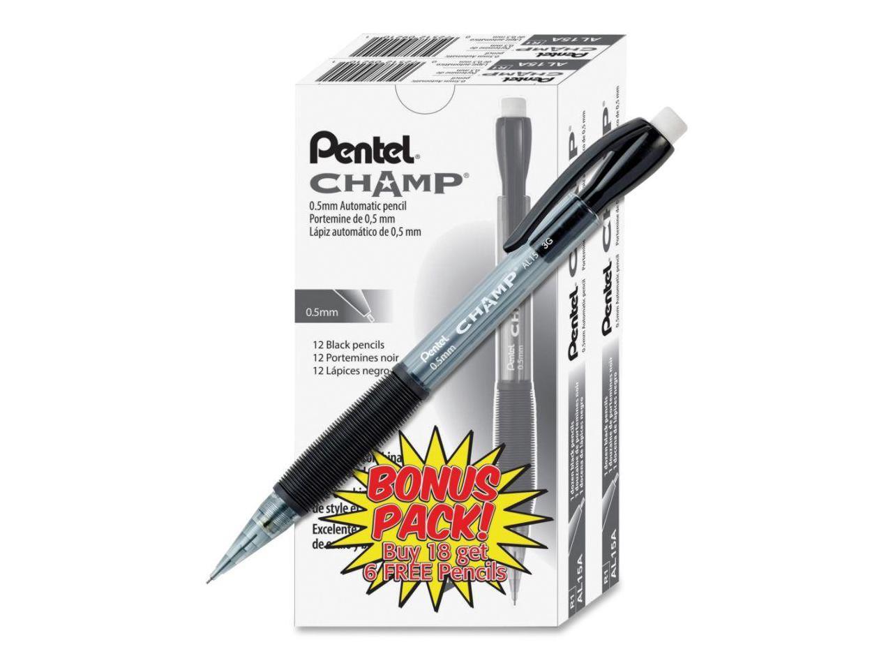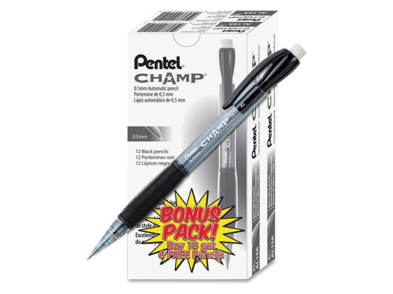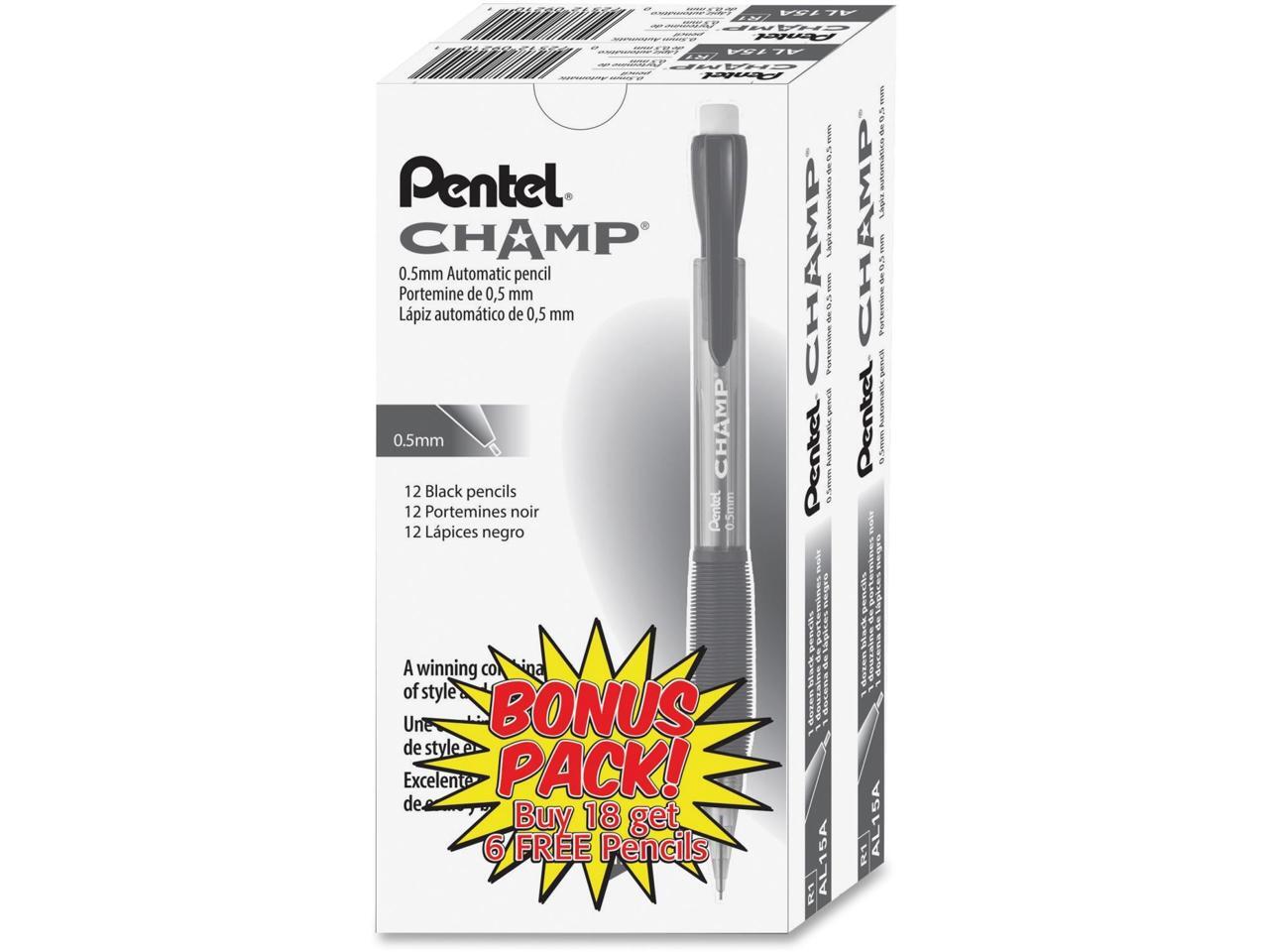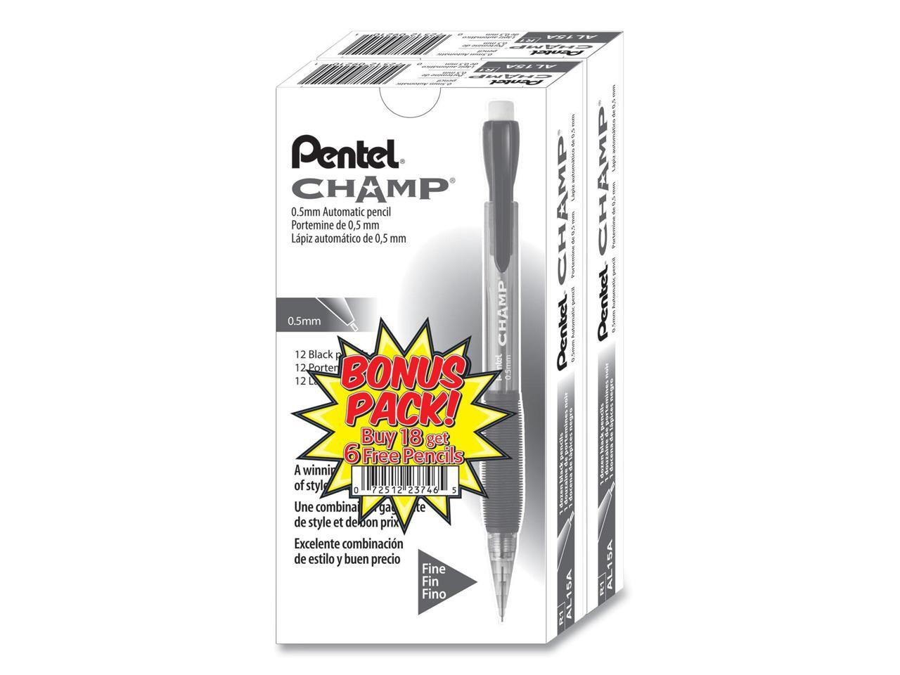 Pentel AL15ASW2 Champ Mechanical Pencil, 0.5mm, 24/PK, Black