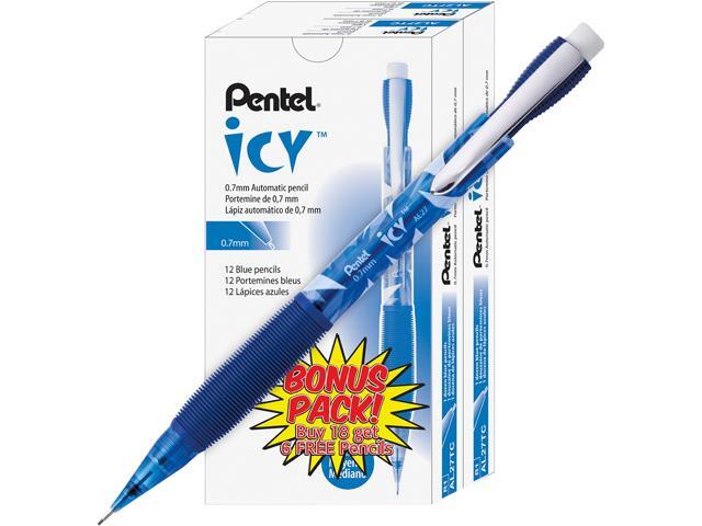 Pentel AL27TCSW-SPR Icy Mechanical Pencil, 0.7mm, HB (#2.5), Black Lead, Transparent Blue Barrel, 24/Pack