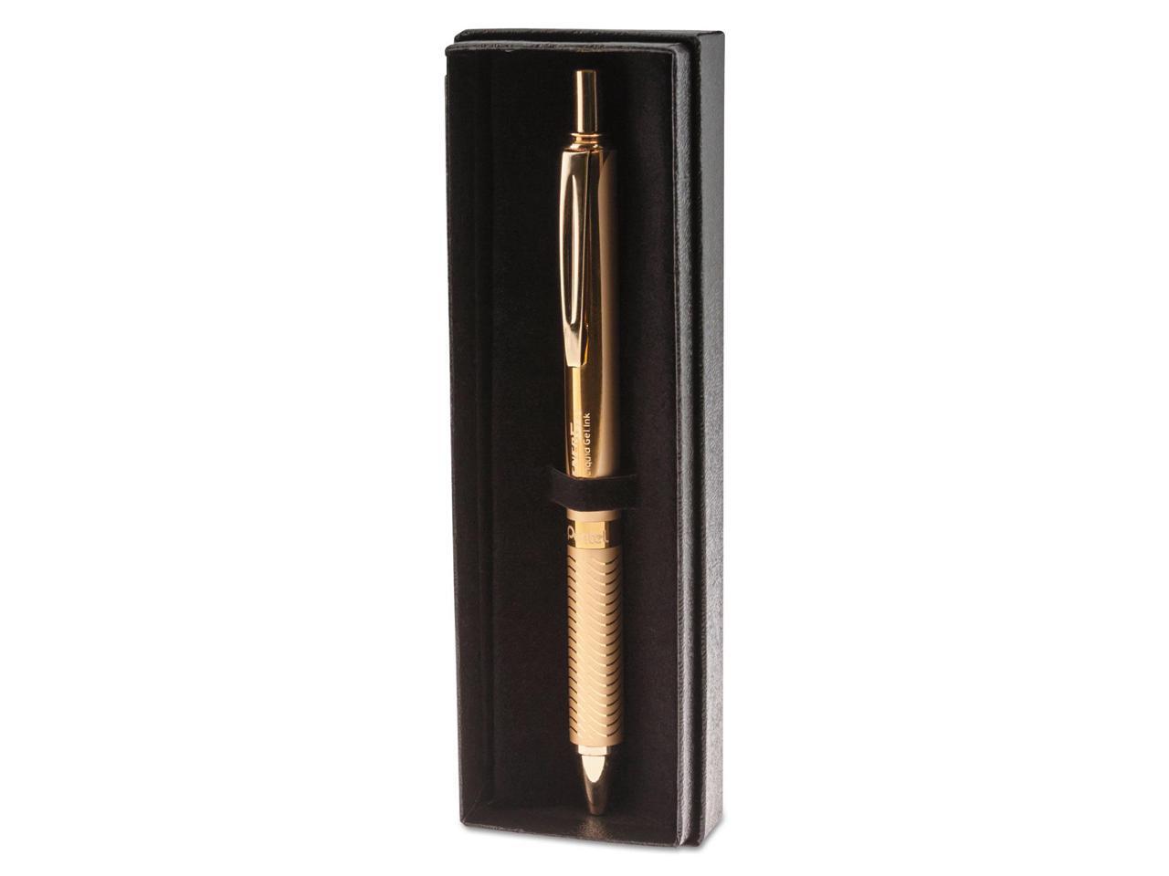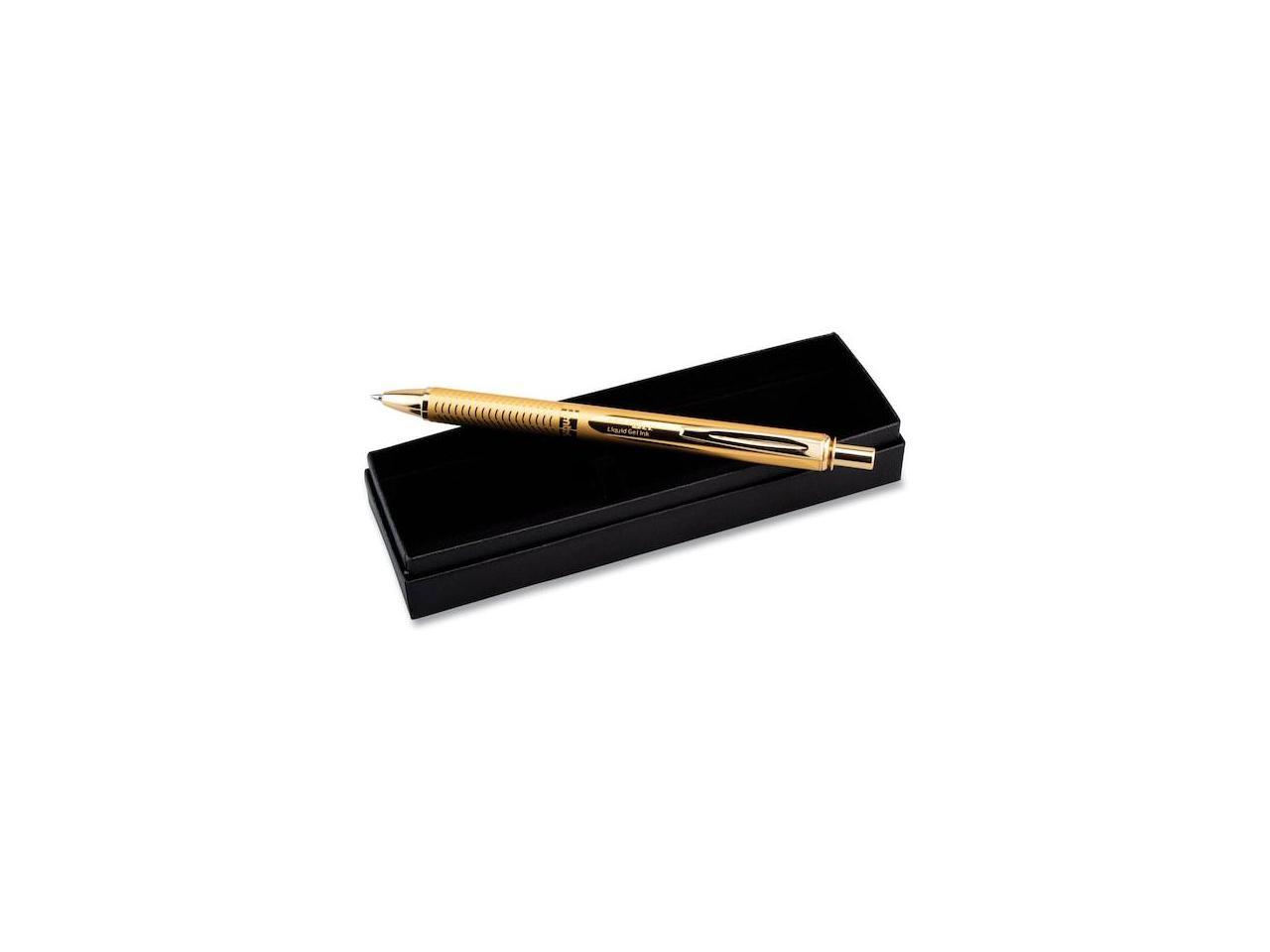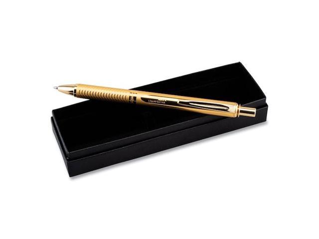 Pentel BL407XABX EnerGel Alloy Retractable Liquid Gel Pen, Gold Barrel, Black Ink, in Gift Box with Info Band