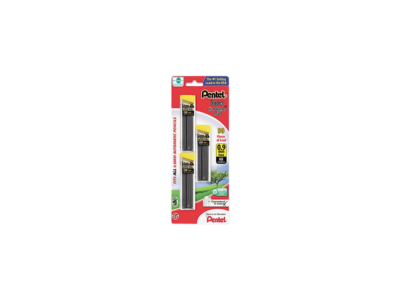 Pentel C29BPHB3 Super Hi-Polymer Lead Refills, 0.9mm, HB, Black, 3 Tubes of 30, 90/Pack