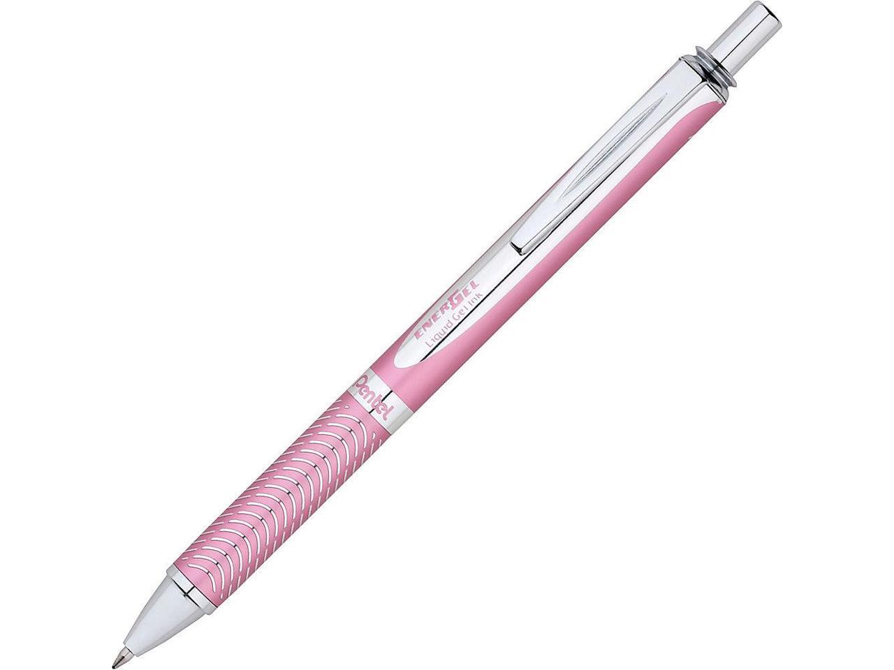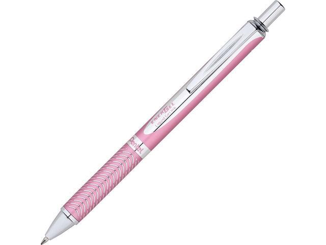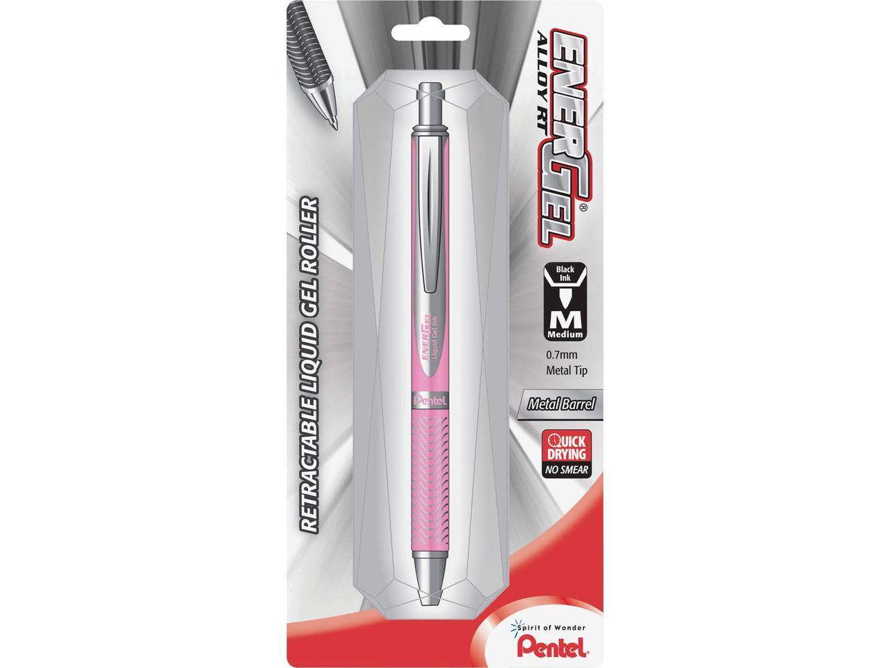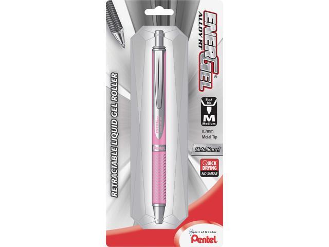 Pentel EnerGel Alloy Retractable Liquid Gel Pen Medium Pen Point Type - 0.7 mm Pen Point Size - Black Ink - Metallic Pink Barrel - 1 / Pack