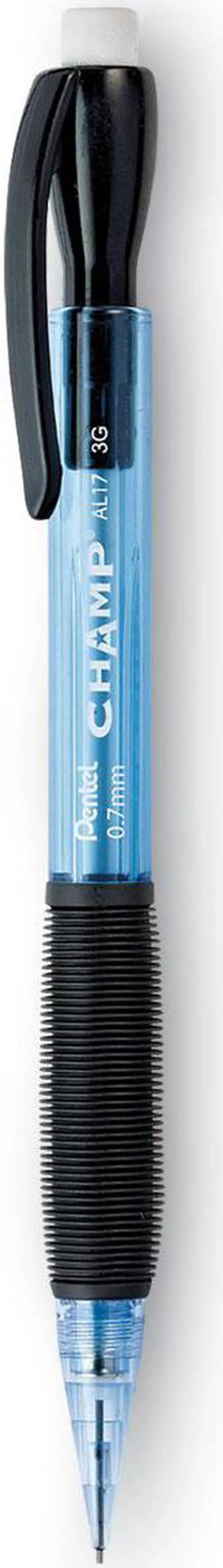 Avoid the need to sharpen by using these blue-barrel automatic No. 2 pencils. Thanks to the 0.7mm tip, these Pentel Champ automatic pencils produce crisp, medium lines of consistent density, while the rubber grip makes long writing sessions comfortable.