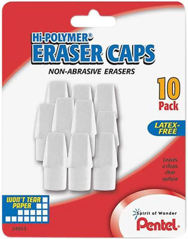 High-quality, white eraser cap is specially designed to lift lead markings off paper with very light pressure. Simply slip over your pencil's worn-down eraser to keep this latex-free eraser handy. Hi-polymer eraser material erases cleanly without scratching or tearing paper surface, and leaves no dust. Nonabrasive block eraser will not crack or harden with age and remains soft and ready to use. White cap-eraser style fits most mechanical and all standard pencils.