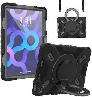 Triple Shockproof Case for iPad Air 5th/4th Generation 10.9 inch 2022/2020 and iPad Pro 11 Case 2022 2021 2020 2018 Gen, Kids Boy Girl Cover with Kickstand & Shoulder Strap (Black)