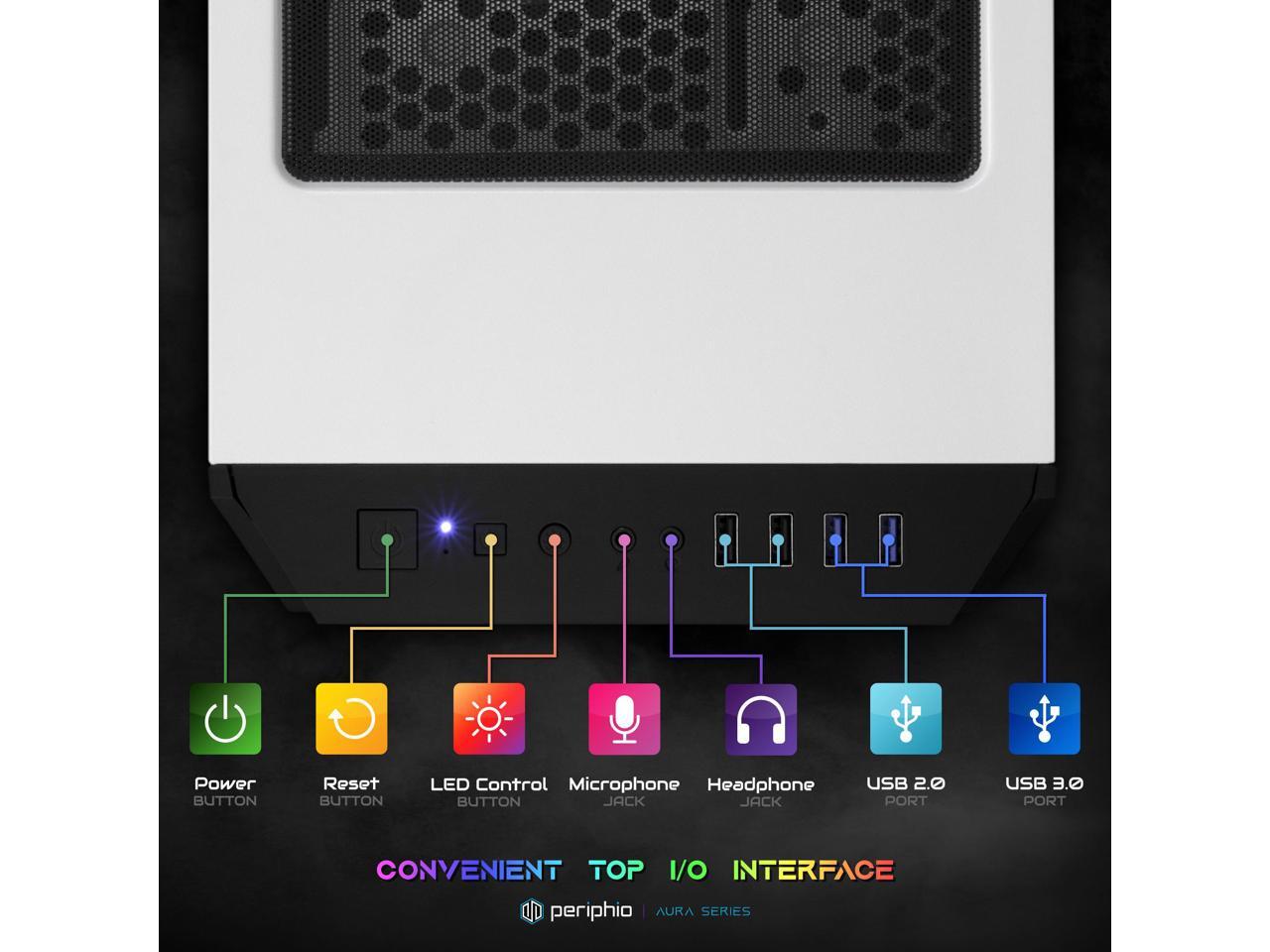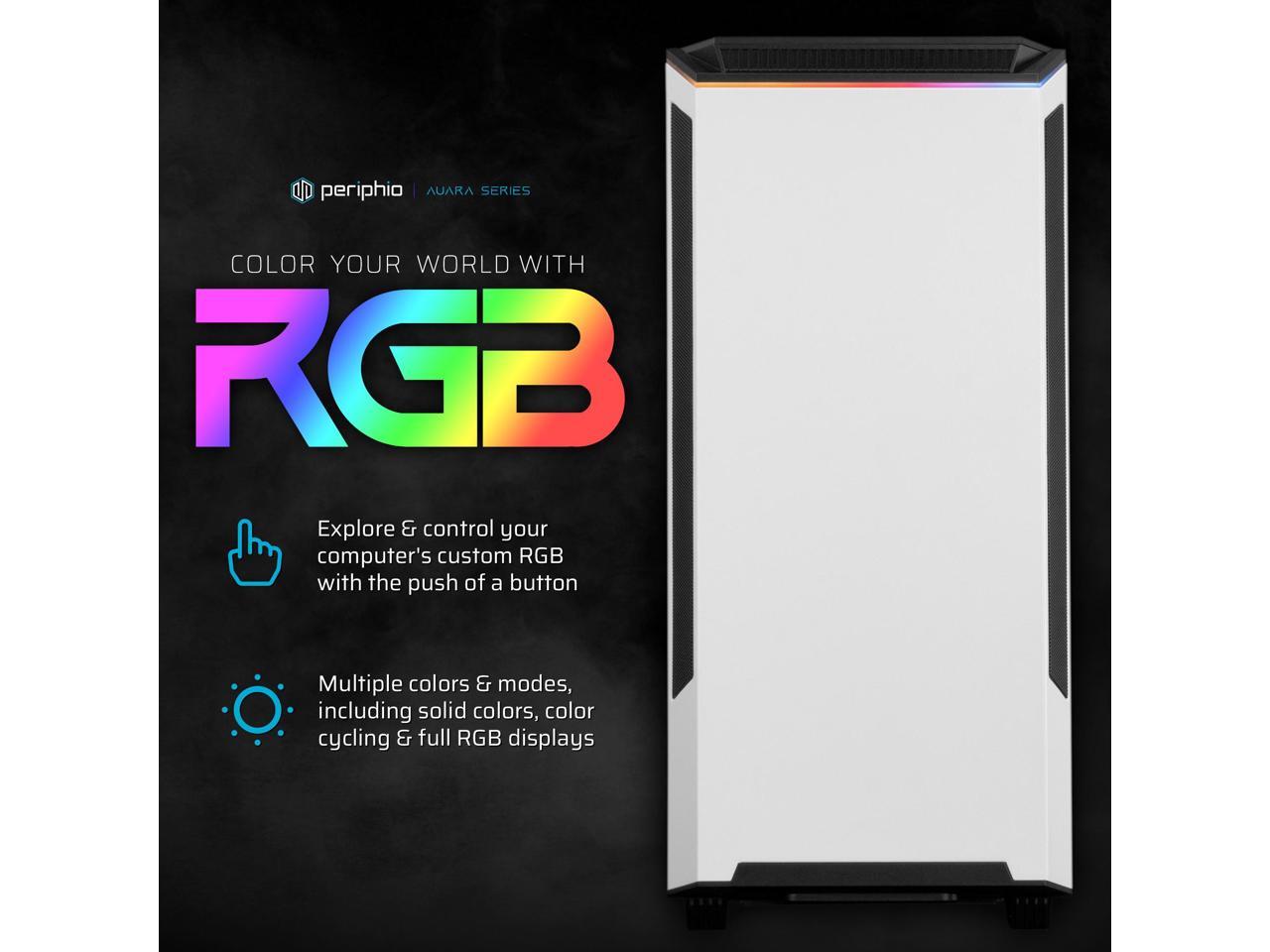 - {AURA SERIES GAMING CASE} This series of Prebuilt Gaming Computers have controllable RGB Lighting with an elegant, minimalist design| Full Pane Tempered Glass side panel| Triple Rad AIO expandable | Futureproof Setup with Plenty of PSU