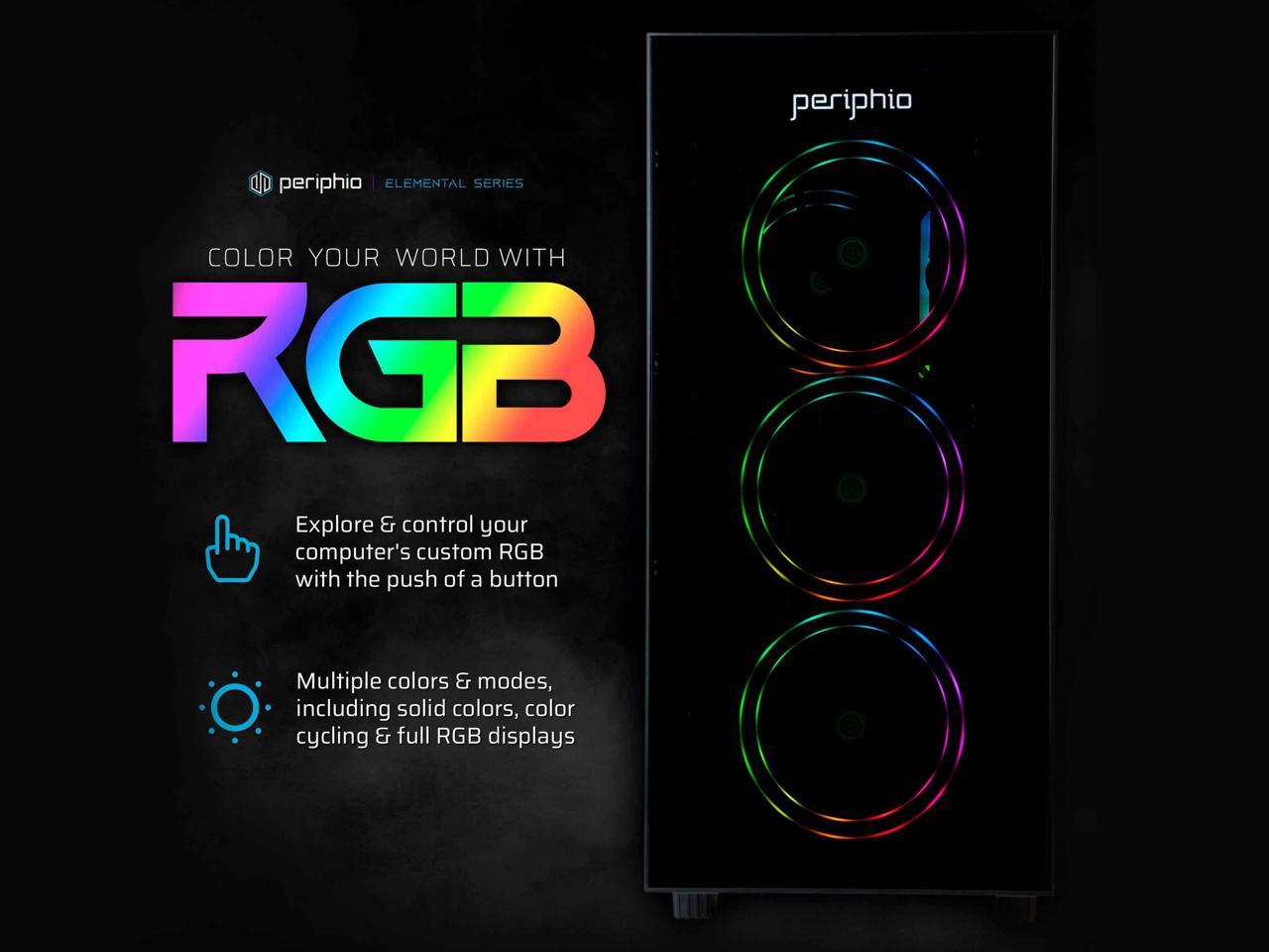 - {ELEMENTAL SERIES GAMING CASE} This series of PC Gaming Computers has RGB Lighting | High-Quality Tempered Glass side panel | Triple Rad AIO expandable | Futureproof Setup with Plenty of PSU {PERFORMANCE TESTED IN-HOUSE} Periphio is one of the few PC building companies in the world to share real world performance results from in-house testing; check out benchmark-videos and infographics! {ULTRA-FAST M.2 NVMe STORAGE} Primary SSD used for Hyper-fast bootup and loading games; 1TB M.2 NVMe SSD with additional SATA ports for future expansion; PCI-e powered storage for your OS, games, programs and documents