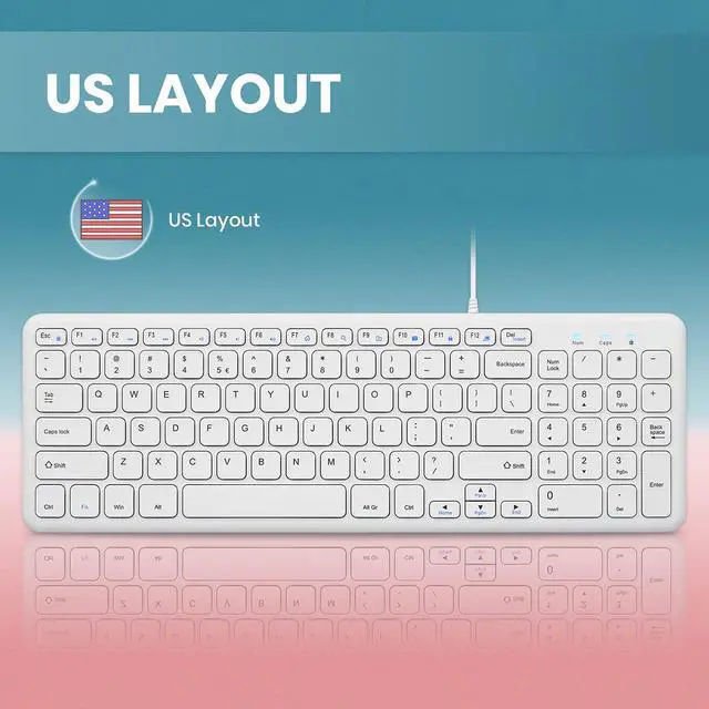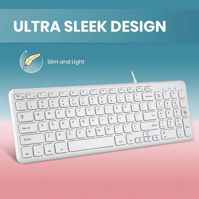 A slim design keyboard, yet featuring a number pad. The keyboard is compact, yet it has all the functions you need from a full-size keyboard.