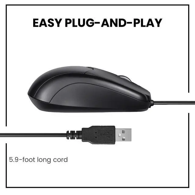 • USB-A Wired Connection: Wired mouse with USB Type-A connectivity for desktops, laptops, and other USB-A equipped devices. Connects directly without adapters for a stable, reliable connection.