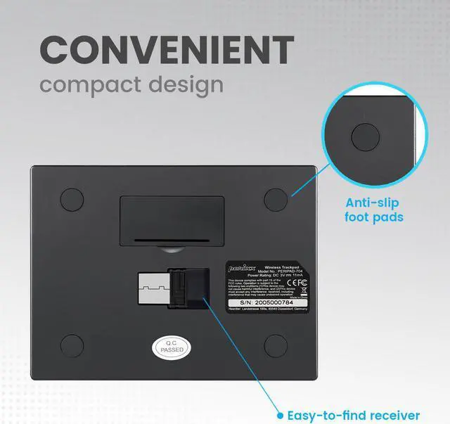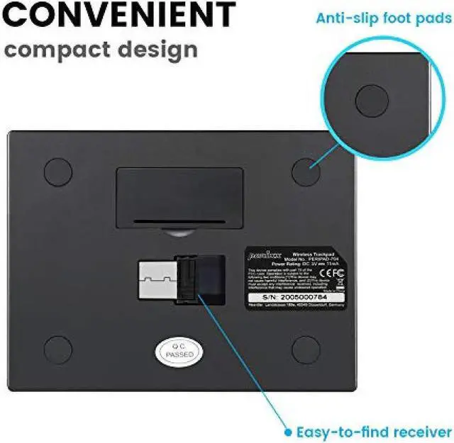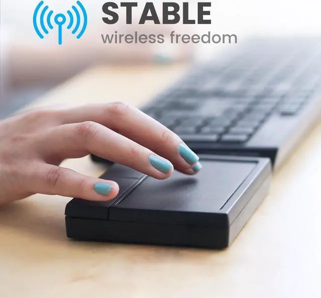 PERIPAD-704 comes with a USB dongle that pairs automatically with your device once it's plugged in. With 2.4 GHz connectivity, this trackpad offers a stable wireless connection.