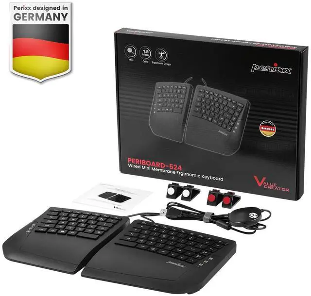 ![Alt view image 6 of 7 - PERIBOARD-524B US, [Firmware Updated] Wired Ergonomic Split Keyboard - Up to 2 Ft Seperation - Adjustable Tilt Angle - Low Profile Membrane Keys - Black - US English](https://c1.neweggimages.com/productimage/nb640/C5DWD260302058GB592.jpg)