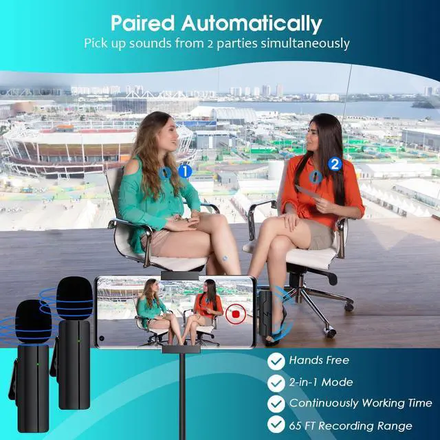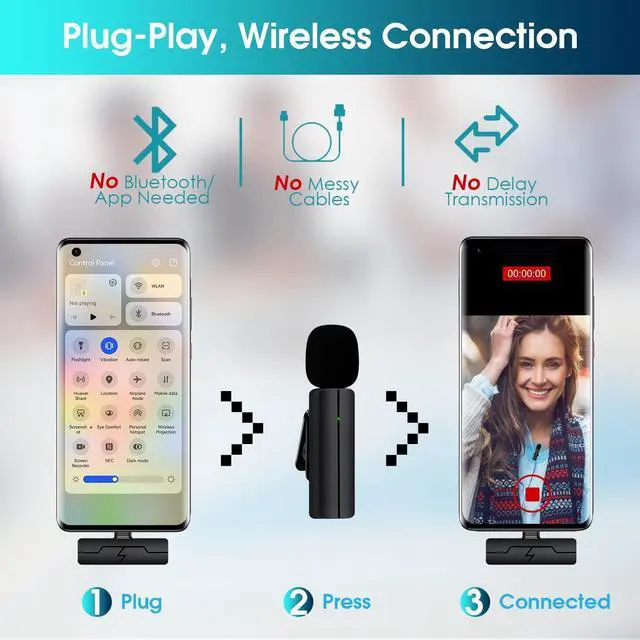 Just get seconds to plug the receiver to your devices and power on your microphones, they will get paired and auto sync. By clipping the lav mic on your collar or just hold in your hand, you can start audio/video recording. (If it's paired successfully but recording is failed , please try to re-plug the receiver)