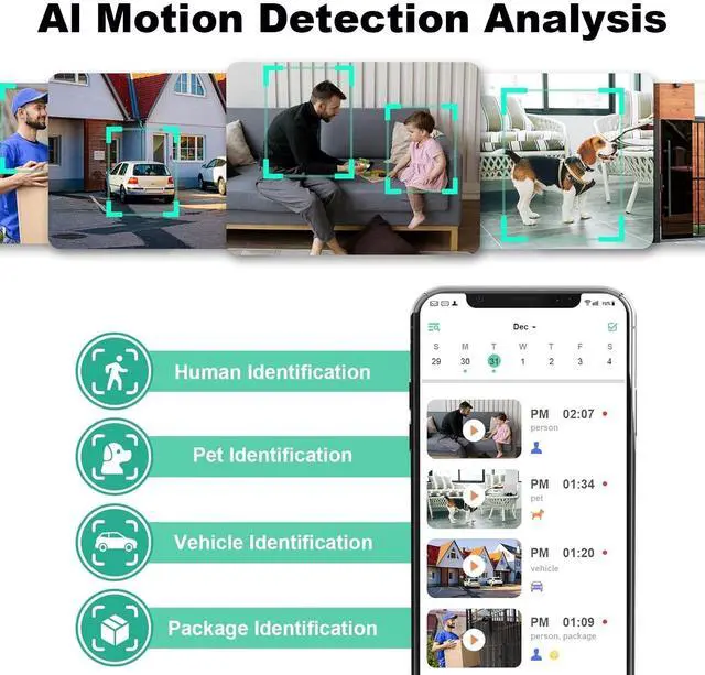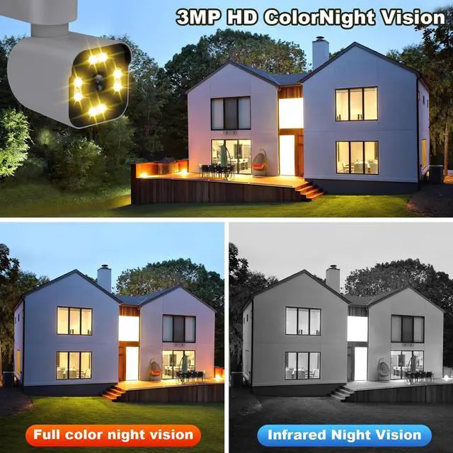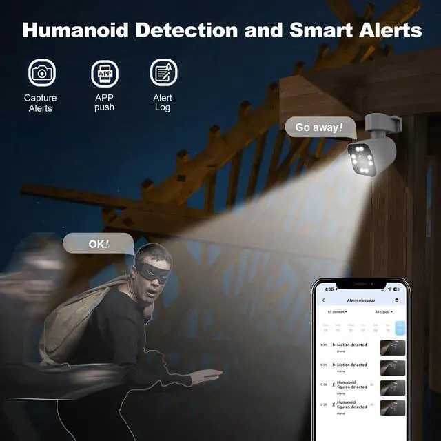 The wireless outdoor cameras offer a comprehensive security solution with efficient motion detection and advanced AI technology that accurately distinguishes between people, pets, packages, and vehicles, minimizing false alarms. Equipped with 1296P high-definition resolution and state-of-the-art color night vision, these cameras provide crystal-clear visibility under any lighting conditions, enhancing your ability to identify individuals or objects. Additional security features include powerful spotlights, a built-in two-way talk function for deterring intruders, and automatic motion-triggered alarms. These wired security camera offer complete WiFi connectivity for convenient remote access through the APP.