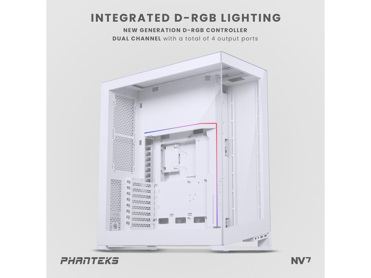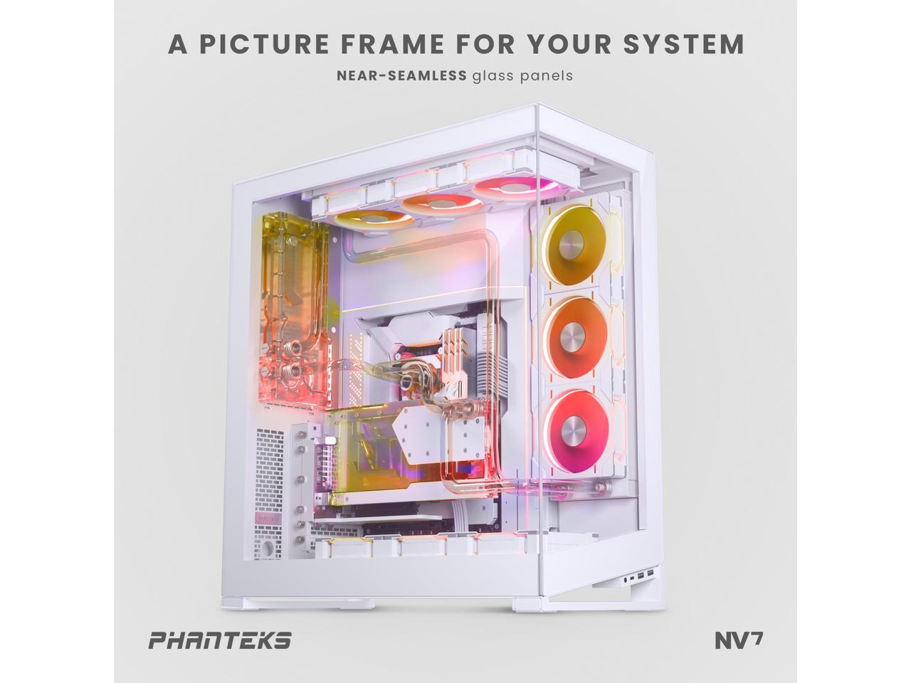 Phanteks NV7, Showcase Full-Tower Chassis, High Airflow Performance, Integrated D/A-RGB Lighting, Seamless Tempered Glass Design, 12 Fan Positions, Matte White