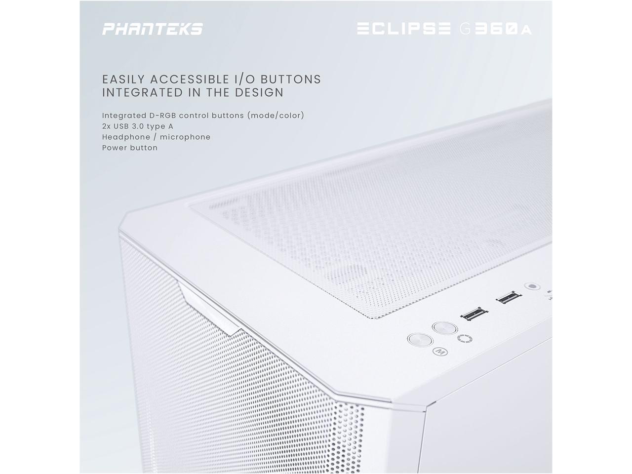 Phanteks Eclipse G360A PH-EC360ATG_DMW02 Matte White Steel / Tempered Glass ATX Mid Tower Computer Case