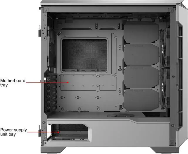 | MB Support | ATX, uATX, mITX and E-ATX (Up to 280mm Wide) | ||