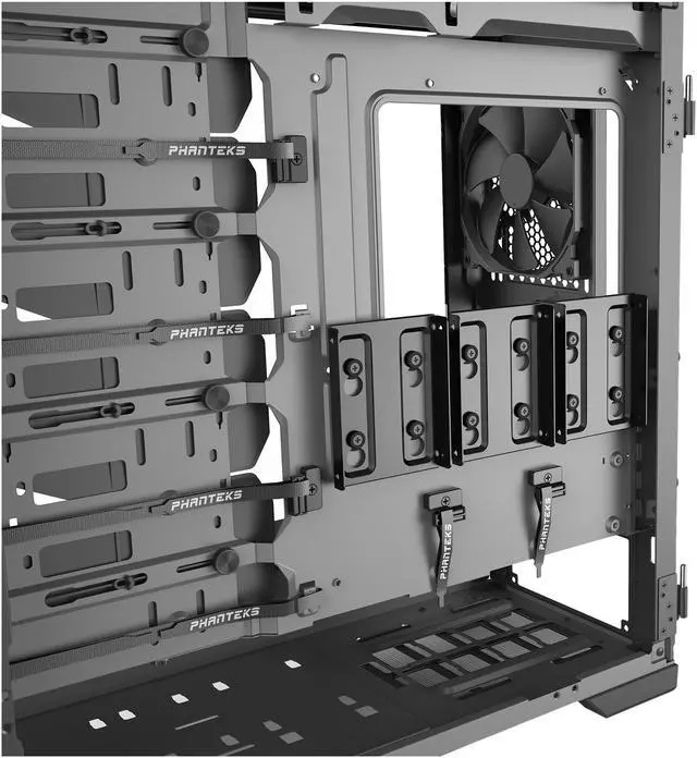 The Eclipse P600S can be easily switched from Silent mode to High-Airflow mode and vice versa. In High-Airflow mode, the case airflow can be maximised when the soundproof-panels are removed to reveal Phanteks' high-airflow fabric mesh.