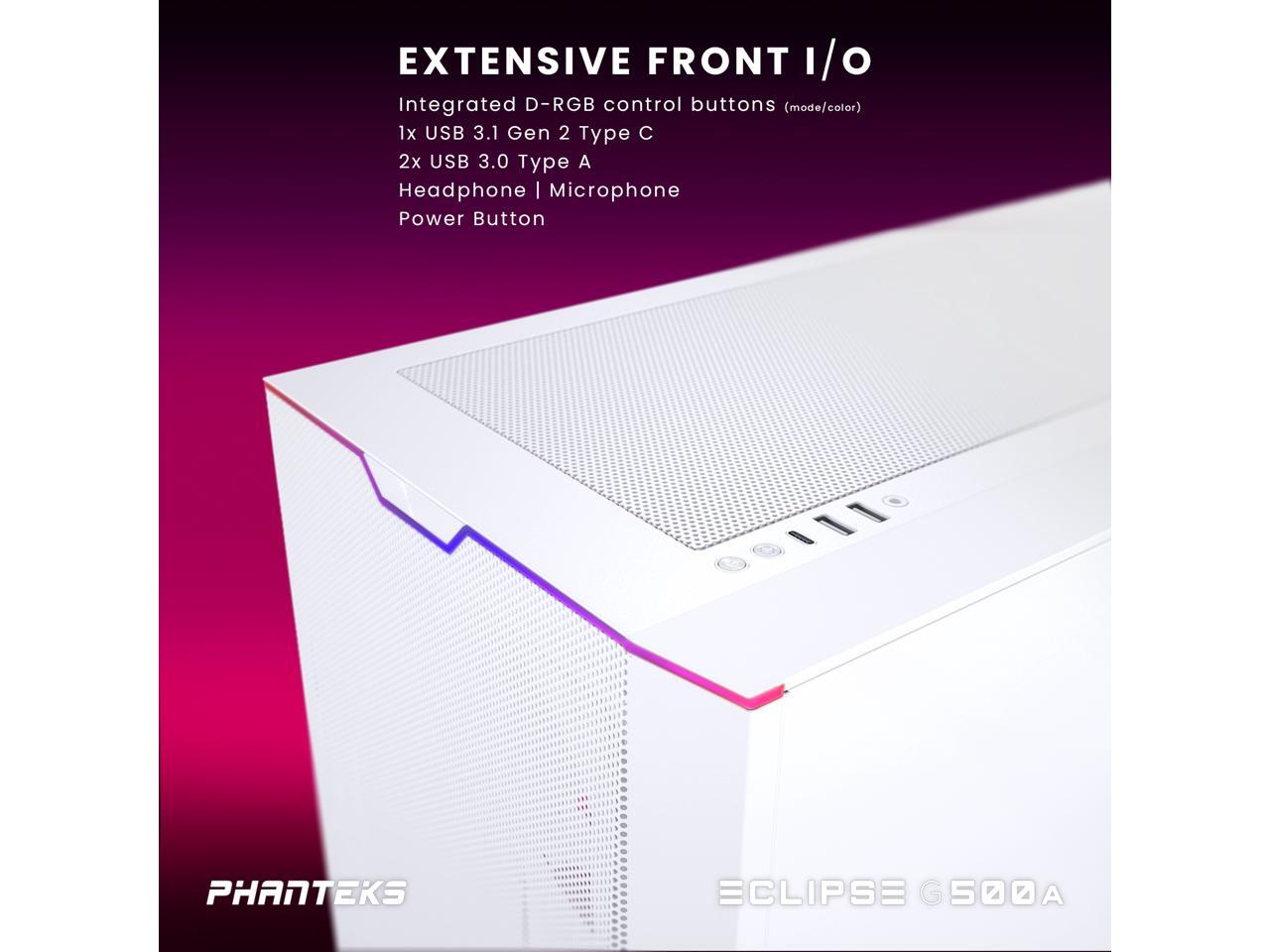 Phanteks Eclipse G500A DRGB, High Performance Mid-Tower Case, Mesh Front Panel, Integrated D/A-RGB Lighting, Tempered Glass Window, 3x M25-140 D-RGB Fans, Matte White