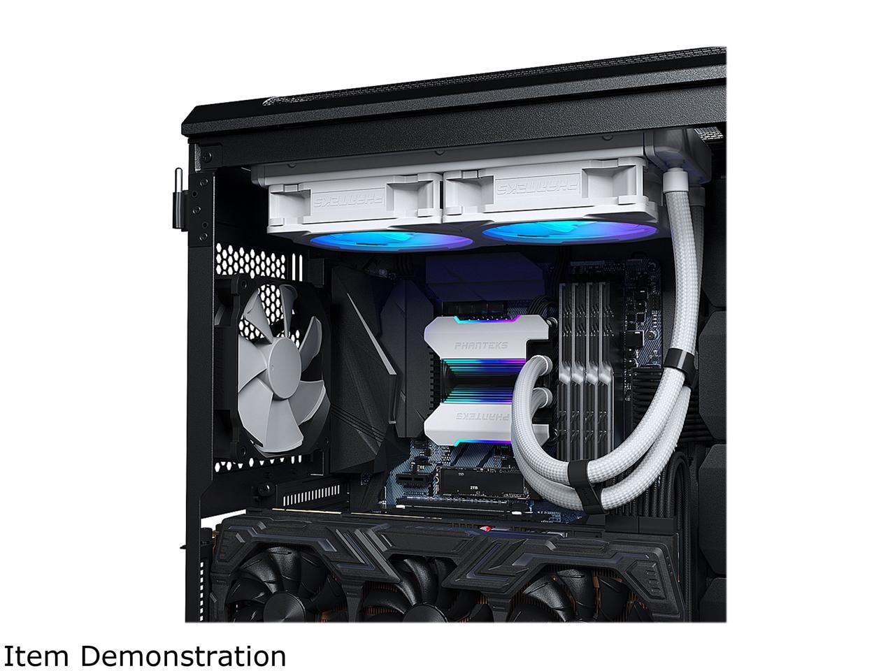 Phanteks Glacier One 240MPH D-RGB AIO Liquid CPU Cooler, Infinity Mirror Pump Cap Design, 2x Silent 120mm MP PWM Fans, 2x D-RGB Halos Fan Frames, White, PH-GO240MPH_DWT01