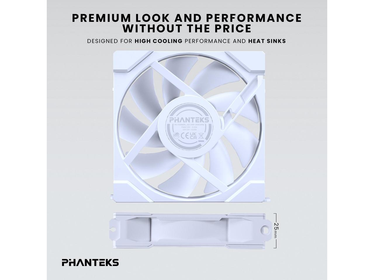 Phanteks M25-120 Gen2 Triple Pack, 3x 120mm ARGB High Performance Cooling Fans, Daisy-chain Unified Fan Frame, Infinity Mirror hub, single cable connection, White
