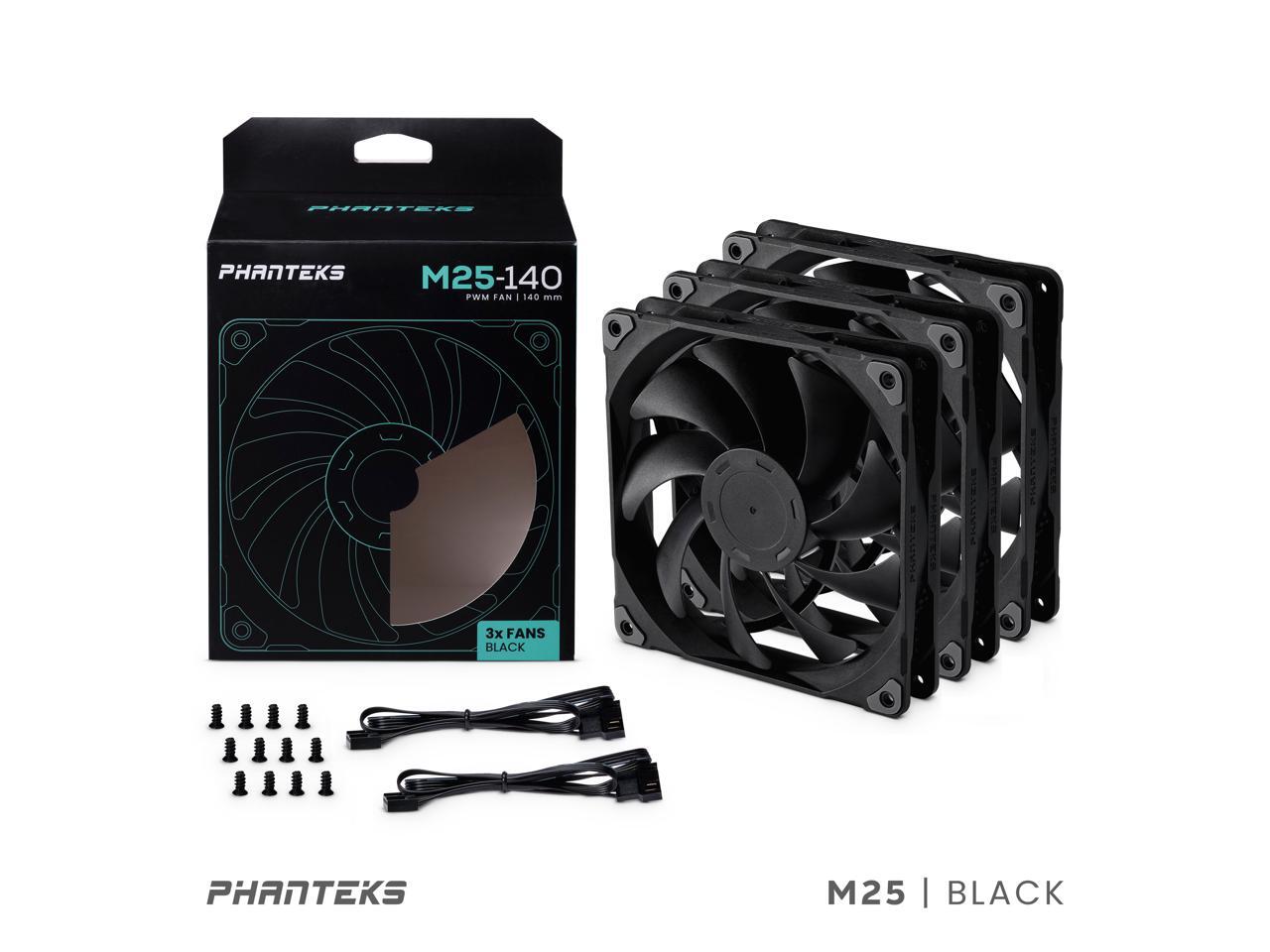Phanteks M25-140 fan, High-Airflow radiator performance, PWM control up to 1800RPM, Daisy-Chain cable, Black ,3 Pack