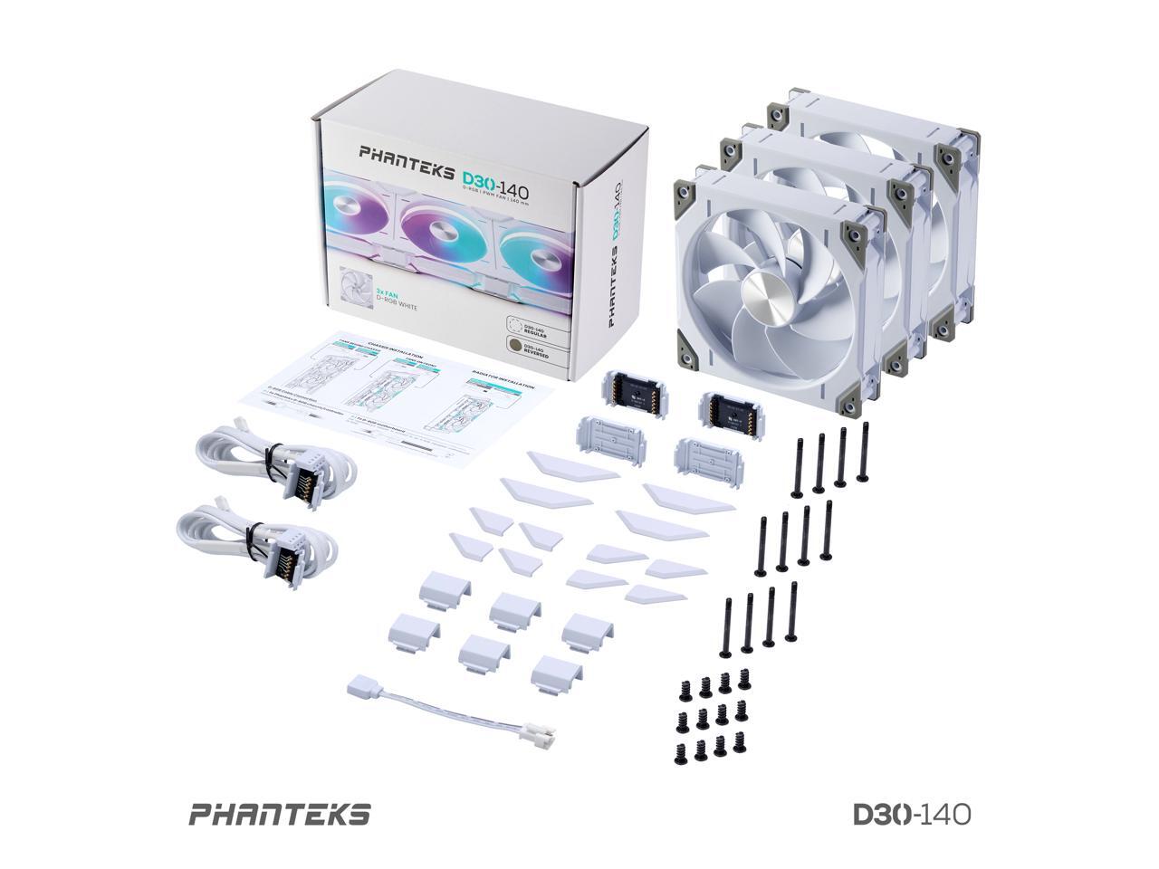 Phanteks D30-140 DRGB PWM FAN 3Pack, Reverse Airflow Model,Premium D-RGB Performance Fans, ARGB/DRGB lighting, Daisy-chain Fan Linking system, White, 3Pack