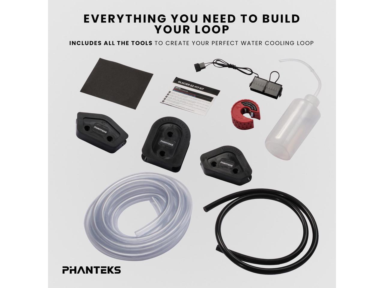 Phanteks Glacier EZ-Fit 360 D30-KIT, Complete DIY Water-Cooling Kit, CPU-Block, Reservoir, 360x30mm Radiator, D30-120 Fan Triple-Pack, Hard Tube, Bending Tools, RGB, White