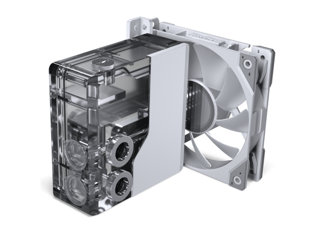 Phanteks Glacier EZ-Fit 120RES-DDC Body, Compact Reservoir for DDC Pump, Integrated EZ-Fit 16mm Fittings, D-RGB, Pump not included, White