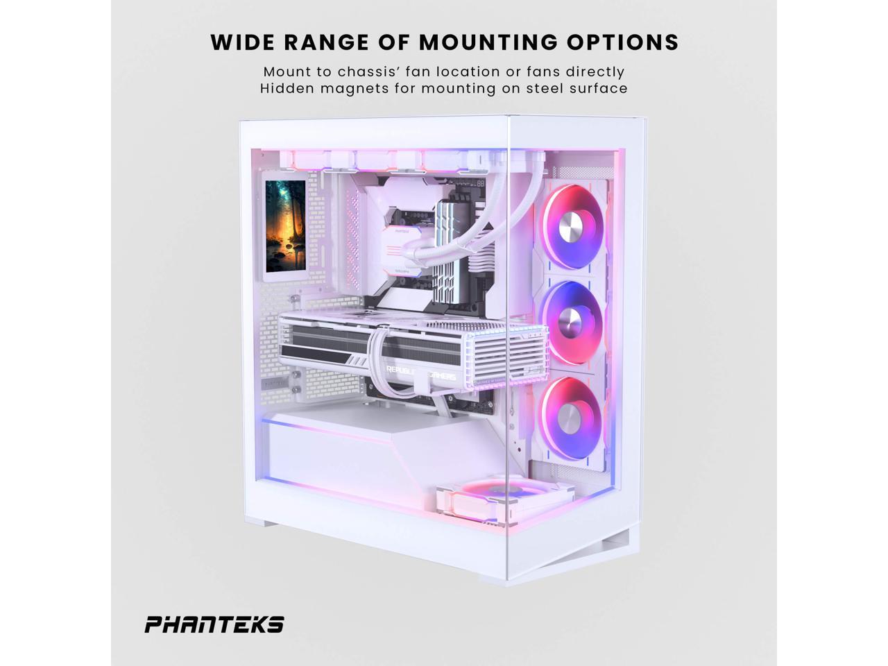 - Wide range of mounting options – Hidden magnets for mounting on a steel surface. Mount tochassis fan location or fans directly