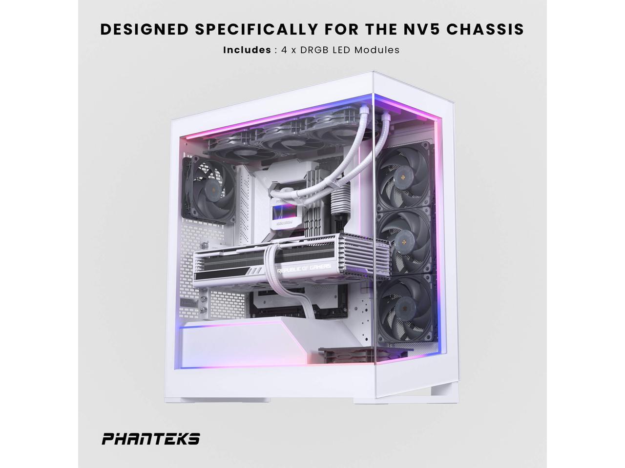 Phanteks NV5 Premium DRGB Kit, 3x D/A-RGB LED modules for NV5 outer frame, 1x D/A-RGB Motherboard cable cover, 1x D/A-RGB Power hub included, White PH-PLEDKT_NV5_DWT01