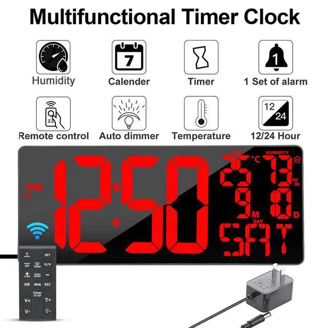![Alt view image 7 of 7 - [Oversized] 18" Large Digital Wall Clock with Remote Control, Auto-Dimming Digital Clock Display with Date/Temp/Week, DST, Alarm, 5.9Jumbo Numbers Large Digital Clock for All Spaces Use](https://c1.neweggimages.com/productimage/nb640/C57ZD2603030VB1CQ91.jpg)