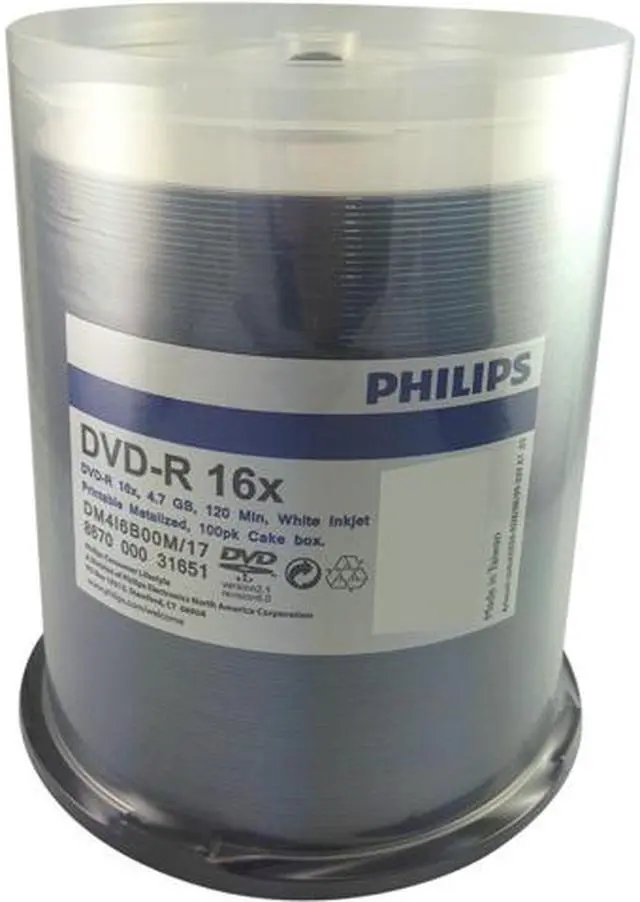 With a 4.7GB capacity per disc, these PHILIPS DVD-R write-once recordable discs are great for recording home movies, multimedia presentations, photo archives, and data preservation. Each disc can be labelled with a full-color, photo-quality image on the inkjet-printable surface, making your collection distinct. The high burning speed allows you to fully write the disc in minutes – no more waiting!