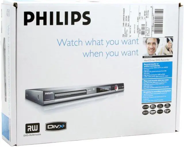 | Feature | Record on Hard Disk without having to worry where to store it. Keep what you like on DVD in lasting quality. Record, transfer or archive conveniently: Record more than 200 hrs of TV on a 160 GB Hard Disk USB Direct plays photos and music from USB flash drives High-speed archiving from Hard Disk to DVD i.LINK digital input for perfect digital camcorder copies Simplicity in recording and playback: Yes DVD converts videos with easy scene selection index Pause Live TV lets you take a break without missing a thing Instant Replay for re-living a live TV moment with one touch VCR Plus+ for quick and easy programming of your recorder Plays and records what you want: Plays MP3, WMA, JPEG, DivX 3.11/4.x/5.x Dual Media effortlessly records both DVD+R/RW and DVD-R/RW Plays CD, (S)VCD, DVD, DVD+R/RW, DVD-R/RW |