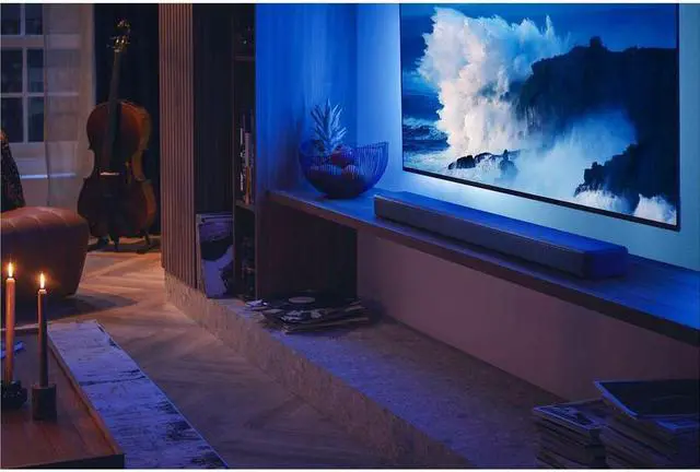 Fidelio Soundbar 7.1.2 with Integrated Subwoofer Remote Control (with Battery) Power Cord Quick Start Guide World Wide Warranty Leaflet