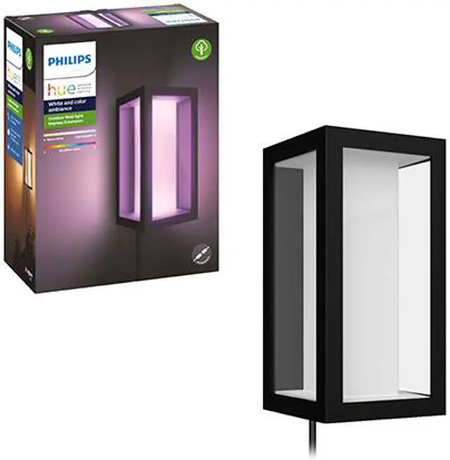 | Specifications | Material: metal glass Dimmable with Hue app and switch: Yes Color rendering index (CRI): 80 Miscellaneous: Especially designed for: Garden & Patio Type: Wall light EyeComfort: No Energy Efficiency Label (EEL): G Technical specifications: Lifetime up to: 25,000 hour(s) Light color: 2000-6500 Hue White Color Ambiance Mains power: 24 V Fixture dimmable: Yes LED: Yes Built in LED: Yes Number of bulbs: 2 Wattage bulb included: 15.8 IP code: IP44 protection from splashed water Class of protection: III - safe extra low voltage Lumen output at 2700K (out-of-the-box setting): 710 lumen Lumen output at 4000K: 1,180 lumen |