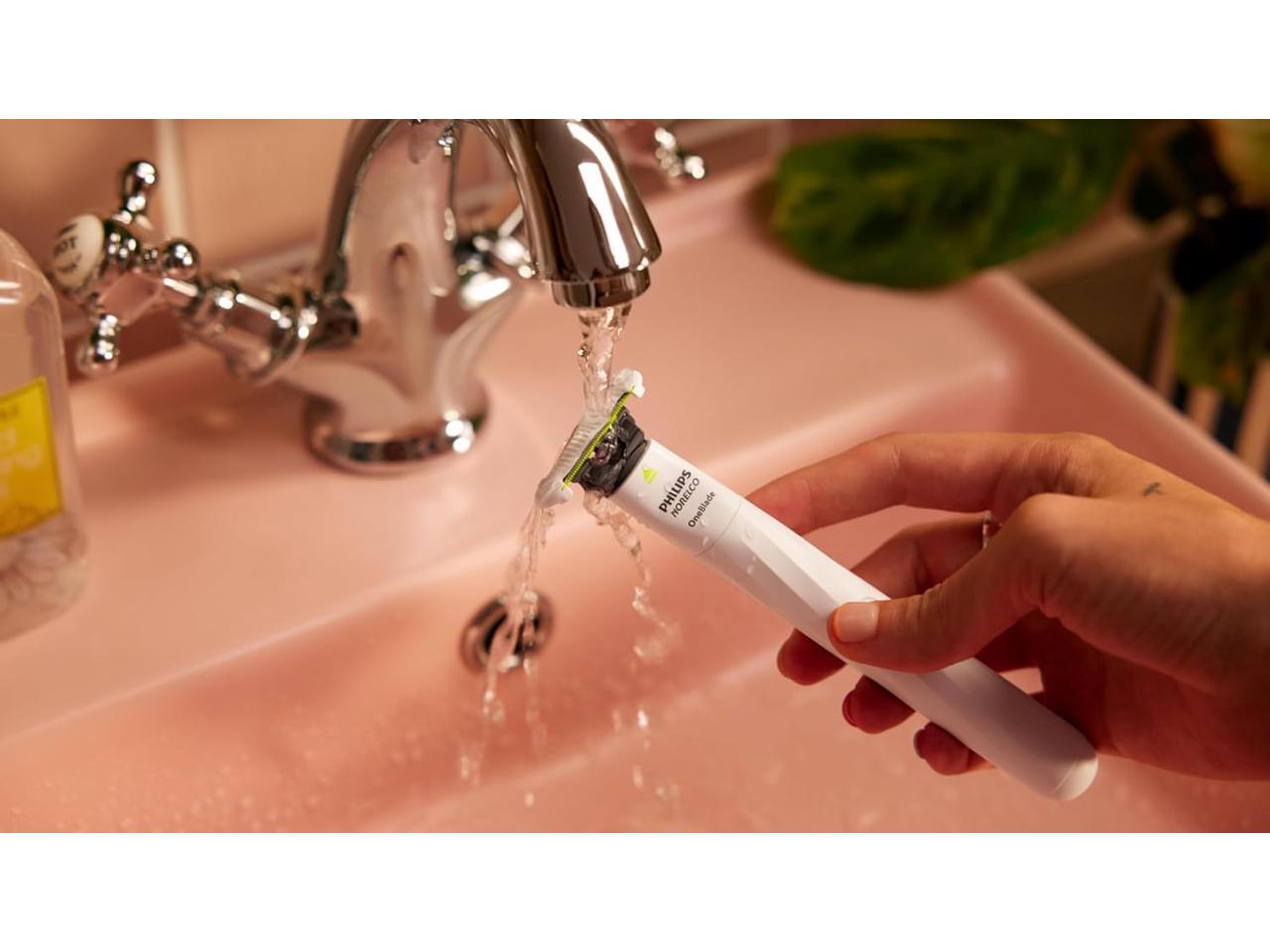 OneBlade Intimate is fully waterproof so you can shave in the bath or shower, wherever you prefer- with or without shaving foam. Rinse to clean under running water.