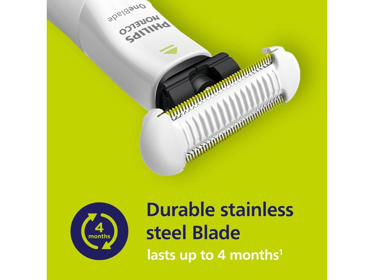 - Stainless steel blades last up to 4 months*. *(For best shaving experience. Based on 2 full shaves per week. Actual results may vary.)