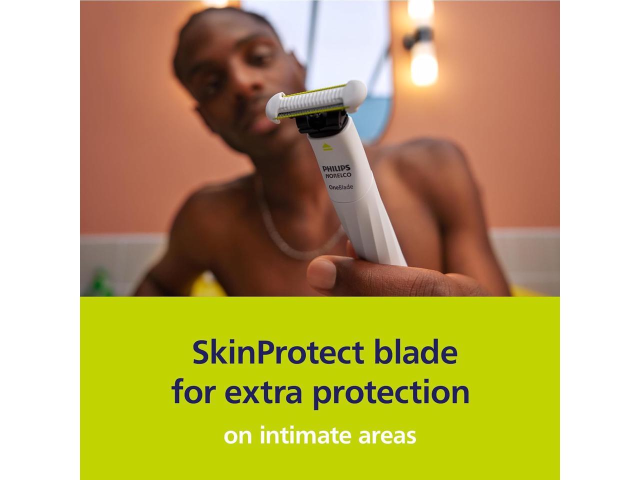 - With the OneBlade Intimate SkinProtect dual-sided blade you can easily shave up or down and style with confidence.