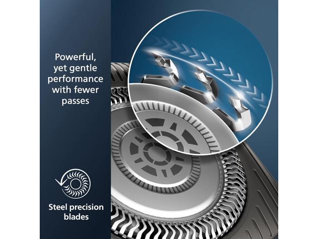 - With up to 90,000 cutting actions per minute, the SteelPrecision blades shave close, cutting more hair per stroke*. The 45 high-performance blades are self-sharpening and made in Europe.