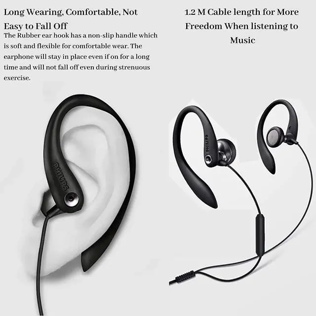 Sport Headphones for Running- Ultra comfort for active use, these ergonomic headphones bring fantastic quality music reproduction straight to your ears.Product Features27mm speaker driver optimizes wearing comfort Small enough for optimum wearing comfort and big enough to deliver crisp,non-distorted sound, the 15 mm speaker driver is an ideal size for listening enjoyment.3D flexible ear-hook ensures secure fit in all ear sizes This 3D ear-hook is both soft and flexible, so it stays comfortably in place when you're active or enjoying your music on the move.Bass pipe emphasizes low tones for a clear, realistic sound Thanks to an acoustically tuned air channel that turbo-charges the bass notes, you enjoy fantastic realism and a truly involved listening experience.A 1.2m long cable that is ideal for outdoor use The ideal cable length to give you the freedom to put your audio device where you want.Extremely durable construction extends product life Thanks to being designed to take the knocks of rough use and being made from strong materials, you can be sure of an extra-long product life.Technical specifications:Acoustic system- open-magnet type -Neodymium Voice coil- copper Diaphragm -Mylar dome-frequency response- 20 – 20,000 HzImpedance- 16 ohmMaximum power input- 15 mW Sensitivity -100 dBSpeaker diameter- 15 mmType -DynamicCable Connection -two-parallel, symmetric Cable length -1.2 Connector -3.5 mm-finishing of connector -chrome-plated-type of cable -OFC