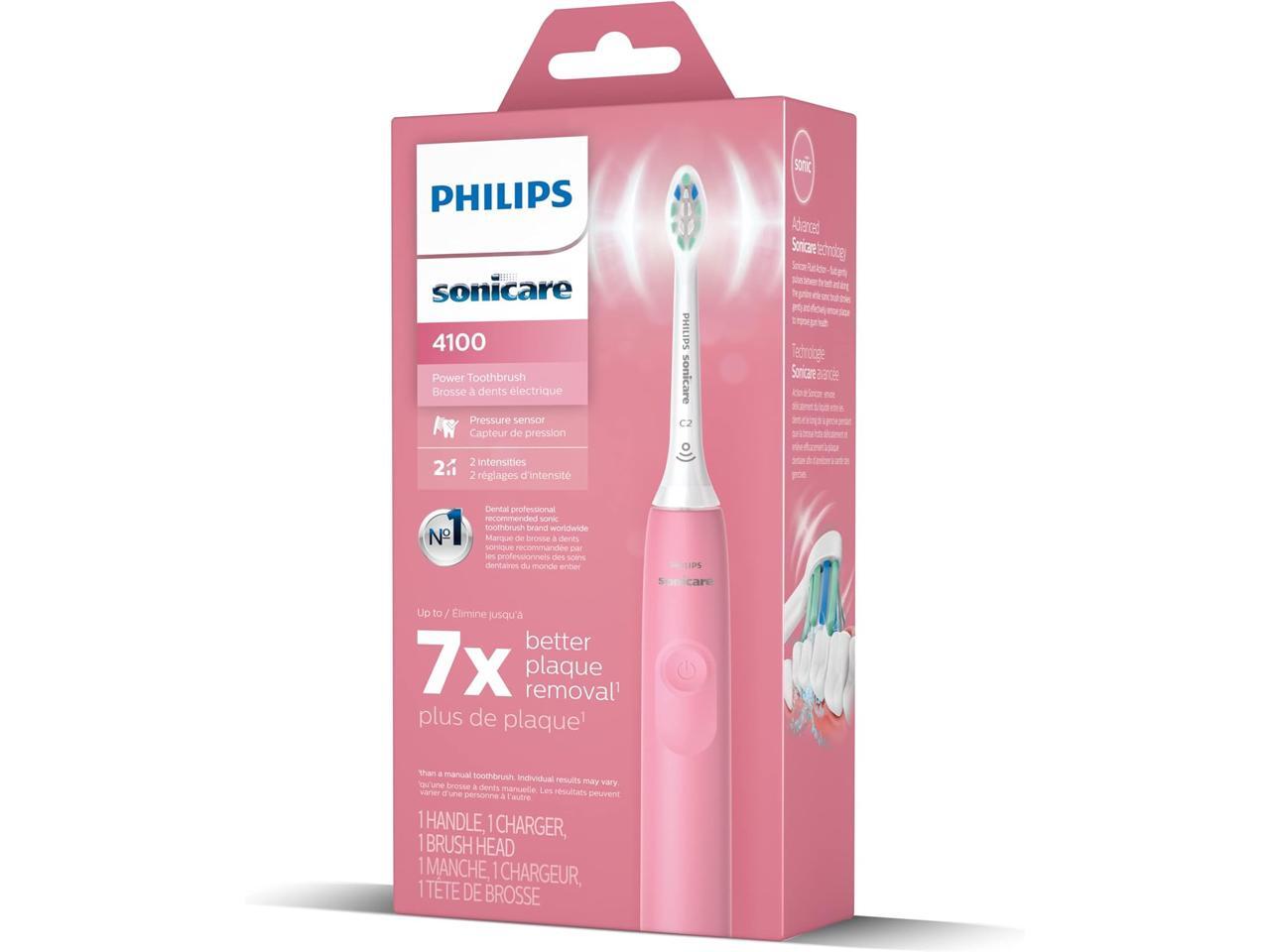 Philips Sonicare 4100 Power Toothbrush, Rechargeable Electric Toothbrush with Pressure Sensor, Deep Pink (HX3681/26)