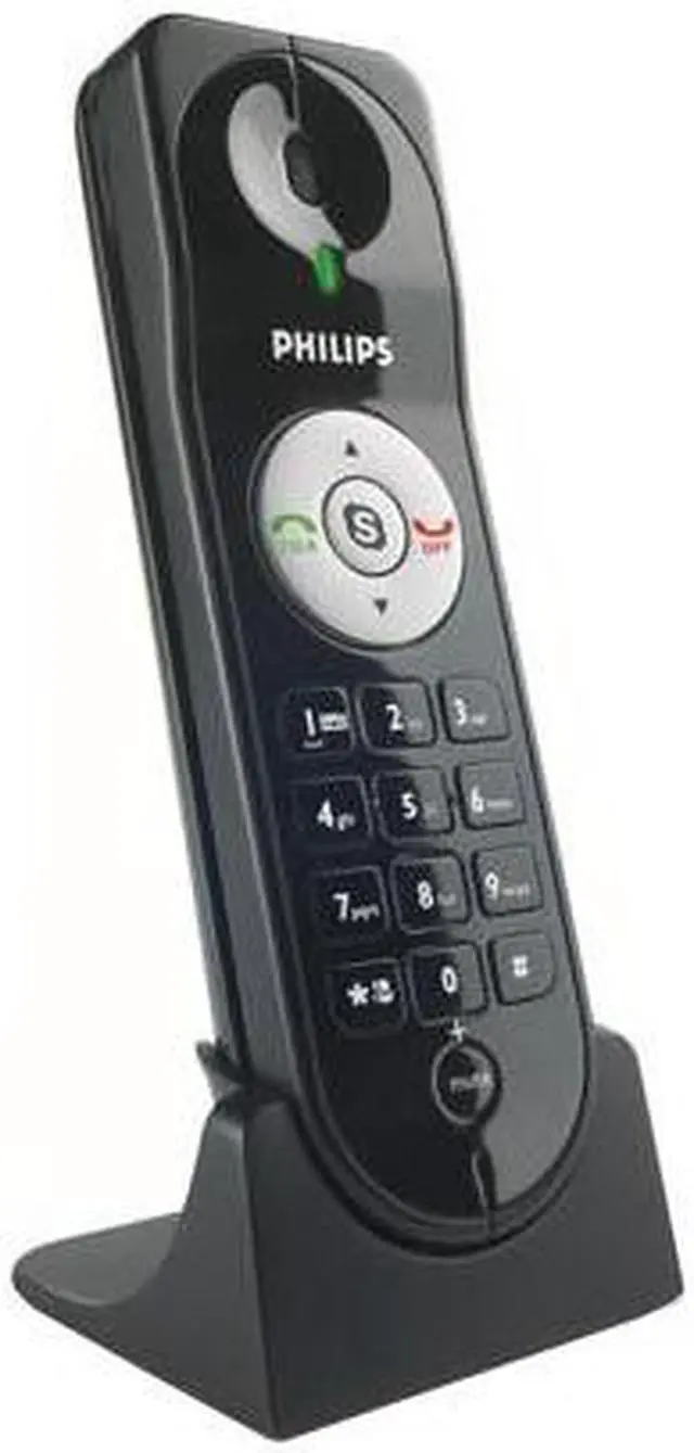 Philips' VOIP0801 is an ideal solution for Skype users on the go. The glossy black handset has a USB cable that wraps around the phone in a special channel for tangle free storage. A handy cradle lets it stand on your desktop for easy access.