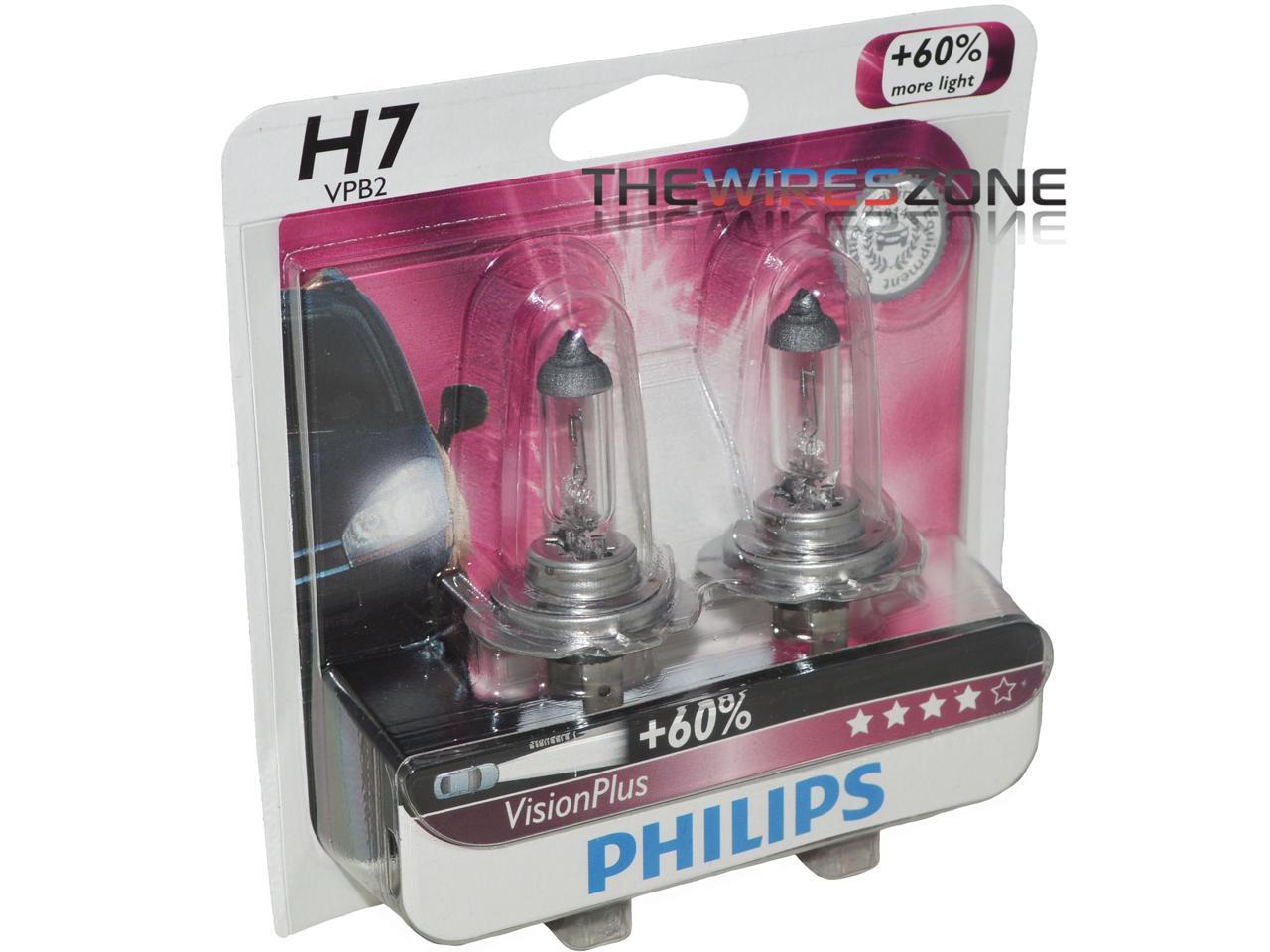 Philips Vision Plus H7 60% More Light 55 Watt 12V Halogen Headlight Bulb (pair)