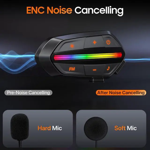 Hi-Fi Sound & ENC Noise CancellingOur motorcycle headphones for helmet adopts cutting-edge noise reduction technology for excellent sound quality in music and calls, and protects your hearing from engine, wind, and traffic noise. Enjoy crystal-clear, lifelike call quality that rivals face-to-face conversation.