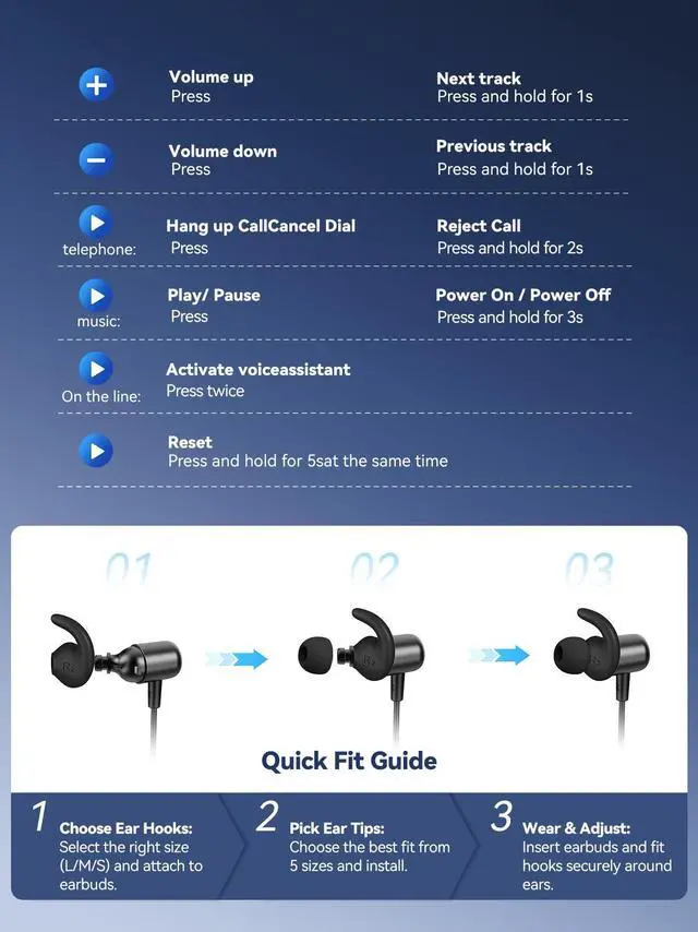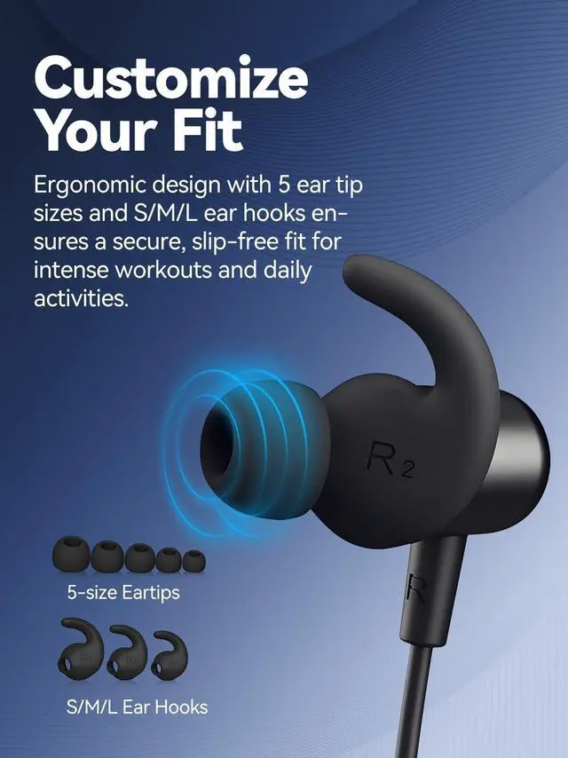 Custom Fit & Comfortable Wear Comes with S/M/L earhooks and 5 sizes of silicone eartips for a secure, personalized fit that stays put during sports and daily activities.