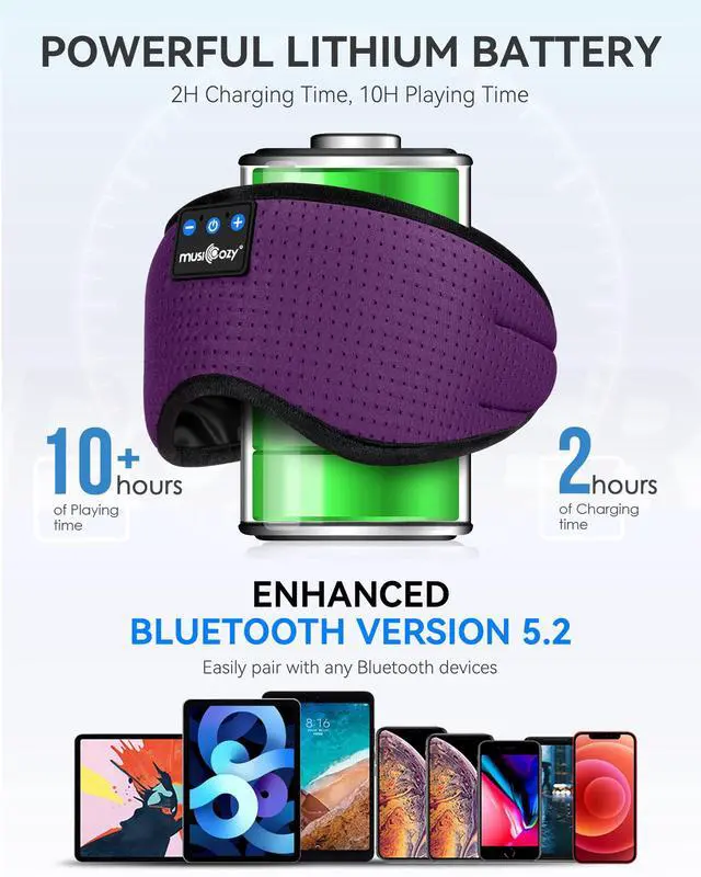 Get an ultra-fast and virtually unbreakable connection between MUSICOZY sleep headphones and your mobile device. Compatible with smartphones, tablets, laptop computers, and more.