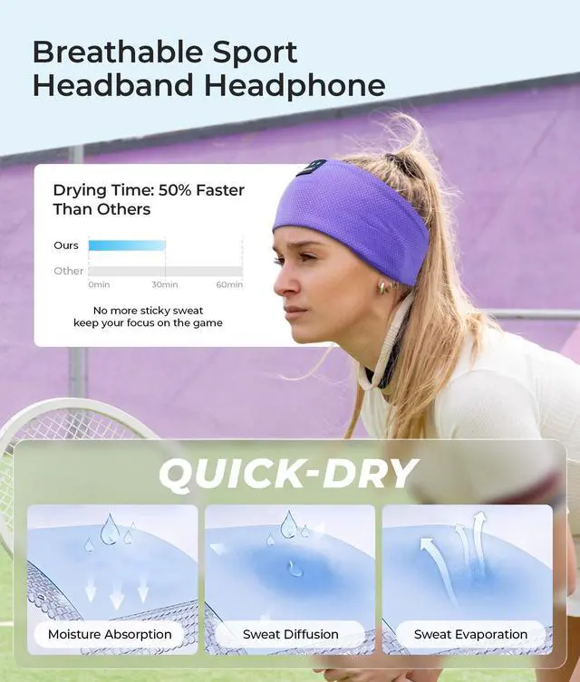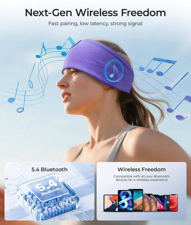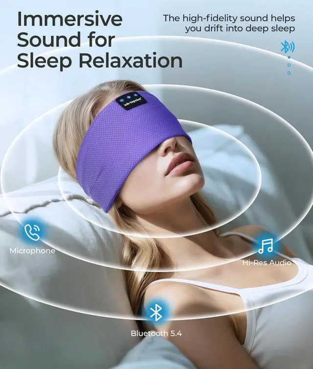 Hi-Fi Audio Sports Headband This headband earphones enjoy crystal-clear hi-fi audio with ink-topoint advanced bluetooth 5.4 technology and 32mm HD drivers ultra-thin speakers. Stable connection for music, podcasts, or callsideal for sleeping mask headphones, working out, runing or wireless earphones outside.