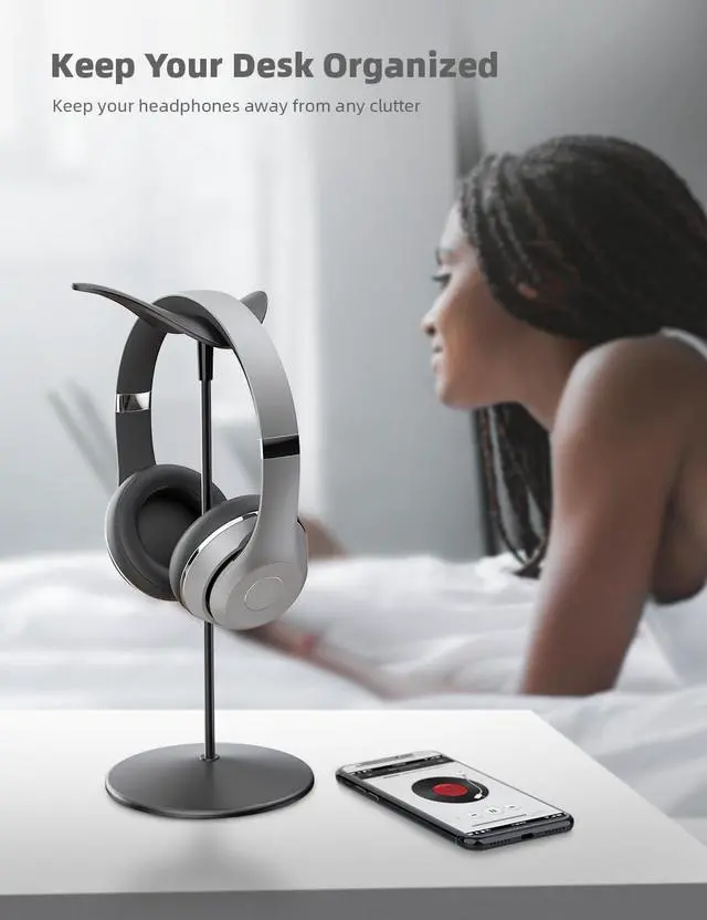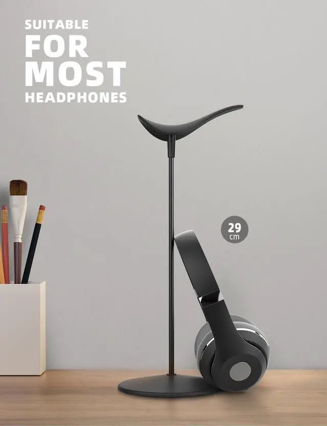 Wide Compatible This desktop headphone headset holder supports all sizes of headphones, such as AirPods Max, Sennheiser, Philips, AKG, beyerdynamic headphones, B&W headsets, HyperX, Razer Gaming Headphones, Logitech, Audio Technica, R OG Gaming headsets etc.
