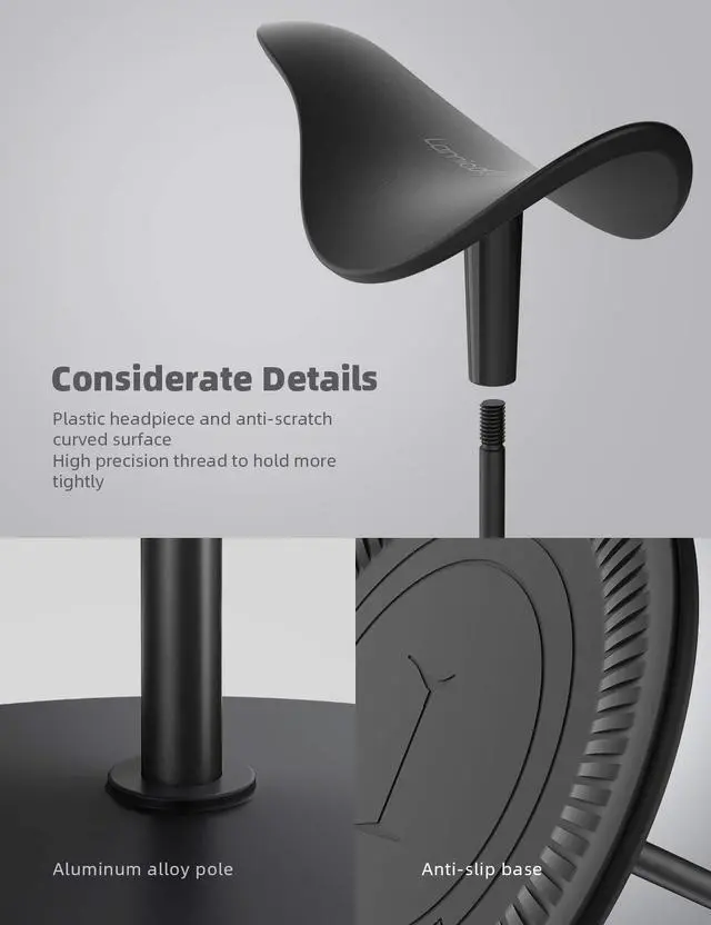 Sturdy & Elegant This headset stand holder is made of aluminum and premium quality ABS plastic, lightweight and disassembled design. Low center of gravity design to provide a safe and stable foundation for your headphones.