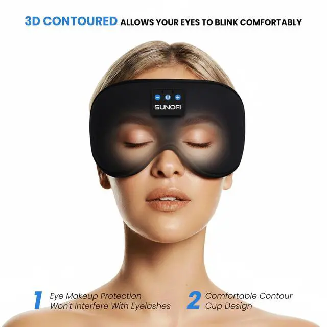 3-in-1 Sleep Mask with Headphones: SunoFi Bluetooth sleep mask combines sleep headphones, Bluetooth eye mask, and sleeping aid in one. The built-in ultra-thin speakers let you enjoy hands-free music, audiobooks, or white noise while blocking light for better sleep. Ideal for napping, travel, meditation, yoga, or dealing with insomnia.
