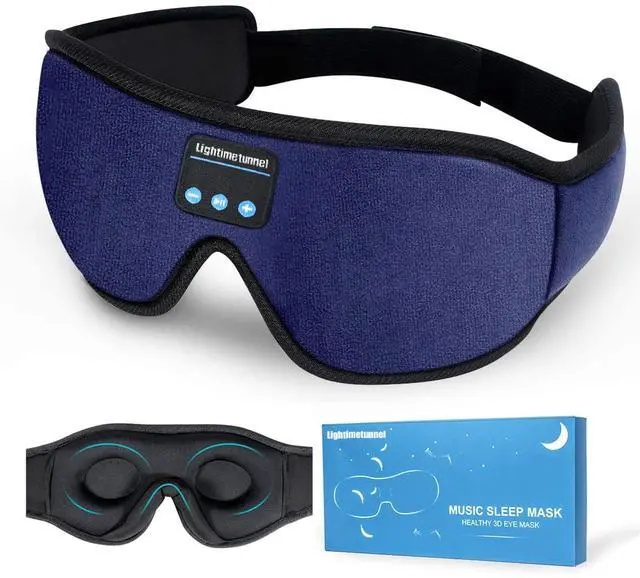 Sleep Headphones, 3D Bluetooth Sleep Mask, LIGHTIMETUNNEL Washable Sleeping Headphones with Ultra Thin Stereo Speakers Microphone Hands Free for Insomnia Travel Blue Color